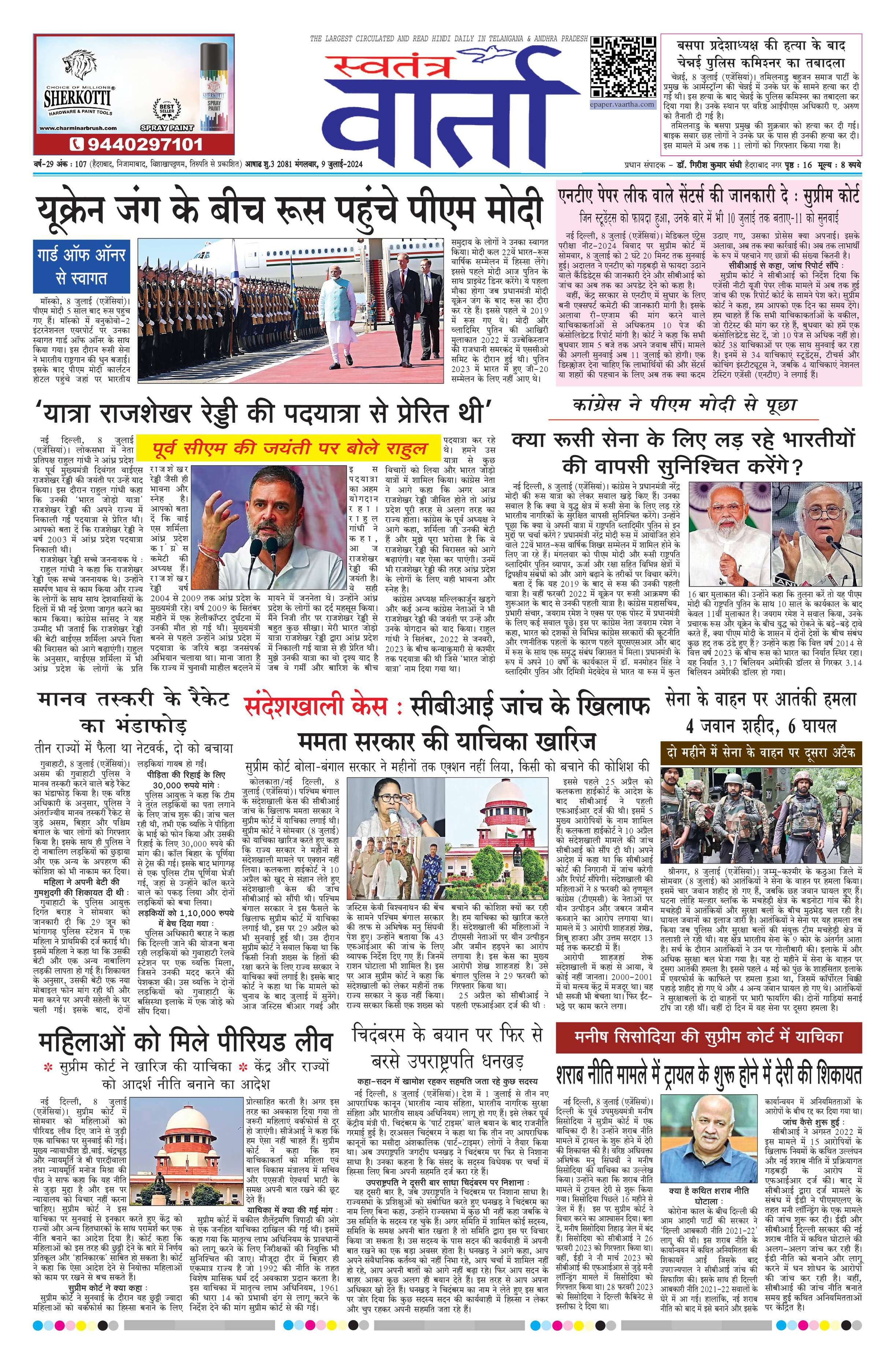 Swatantra Vaartha - 09 Jul 2024 - - Page 1
