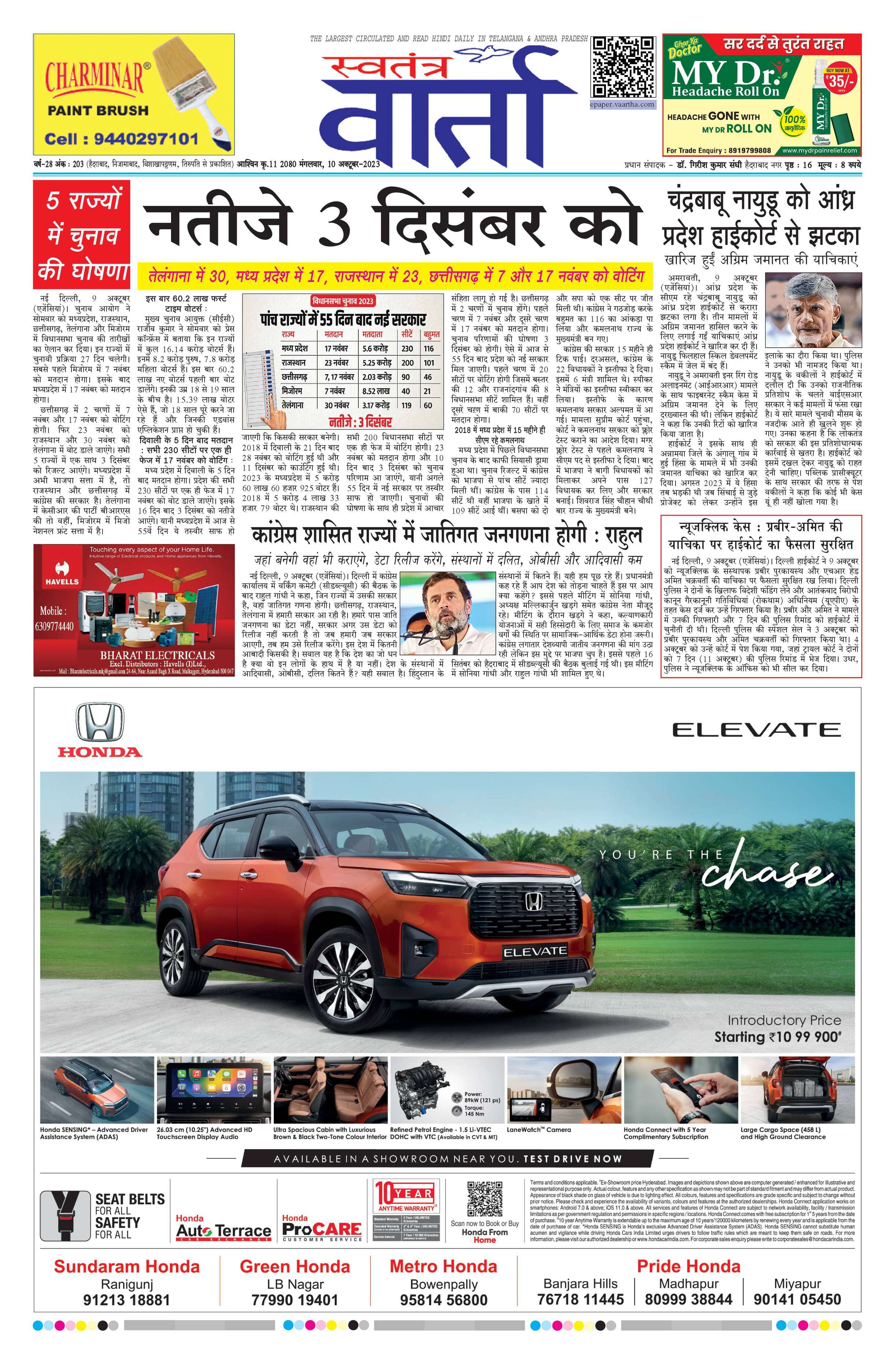 Swatantra Vaartha - 10 Oct 2023 - - Page 1