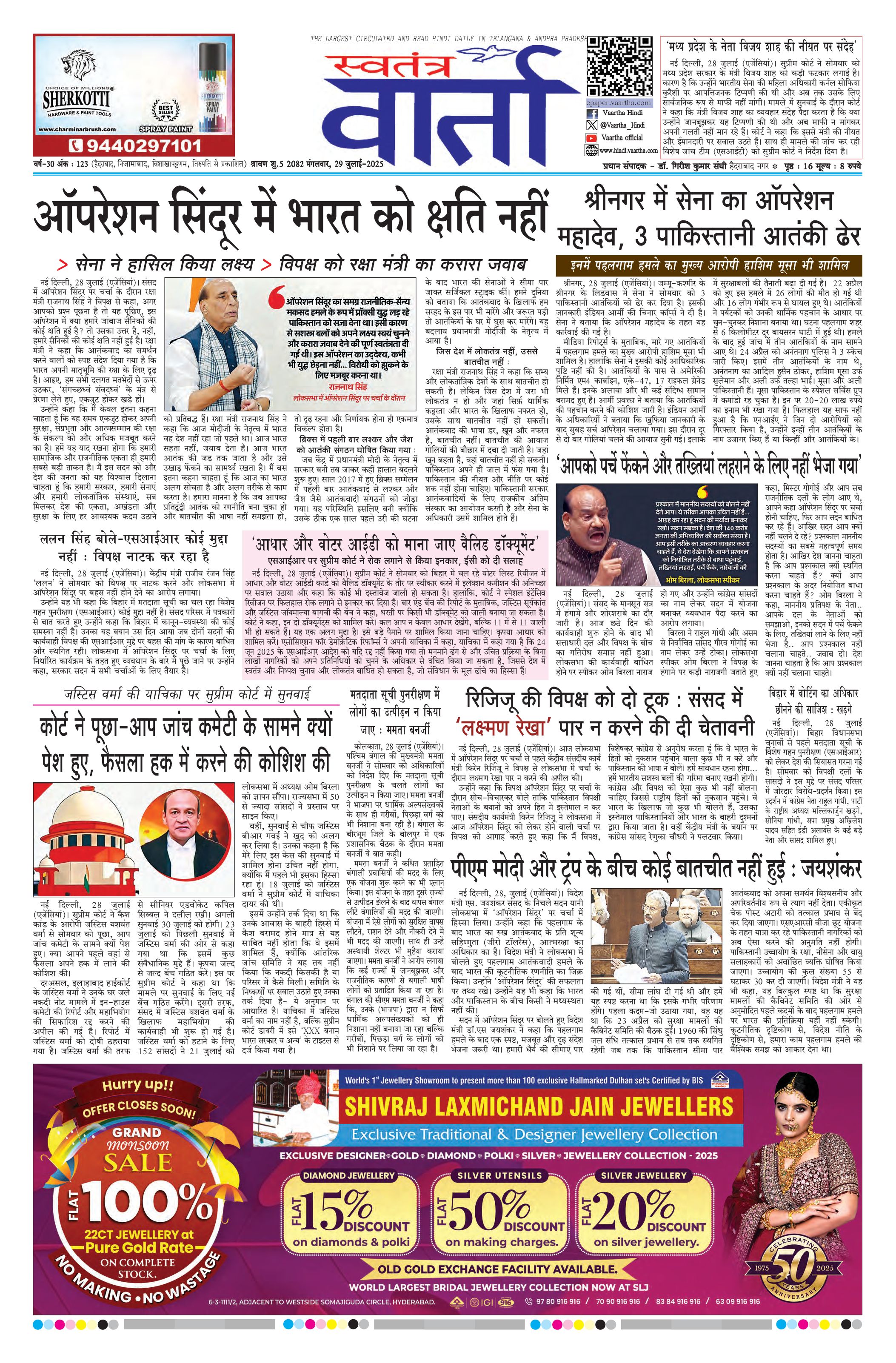 Swatantra Vaartha - 29 Jul 2025 - - Page 1