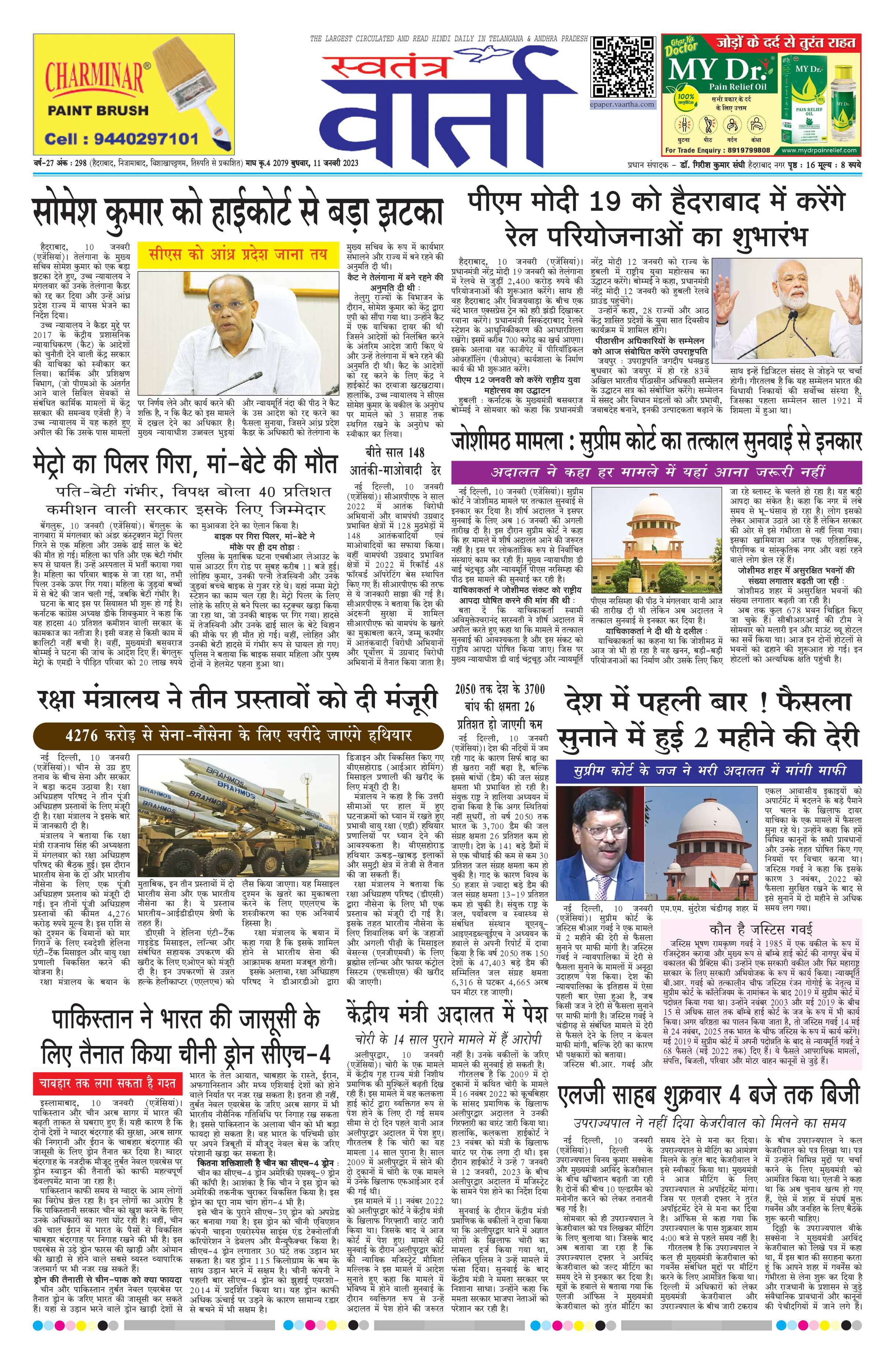 Swatantra Vaartha - 11 Jan 2023 - - Page 1