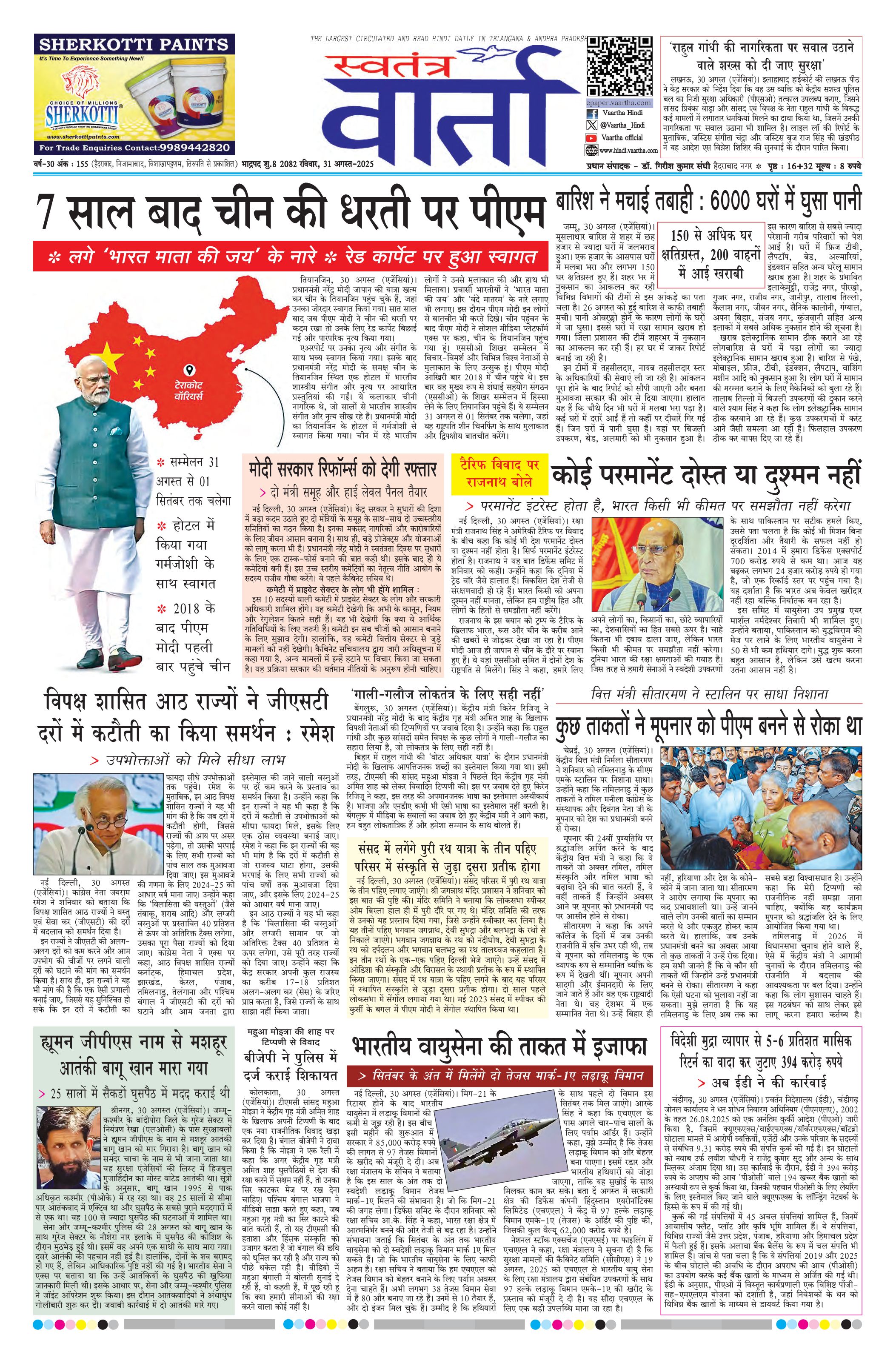 Swatantra Vaartha - 31 Aug 2025 - - Page 1