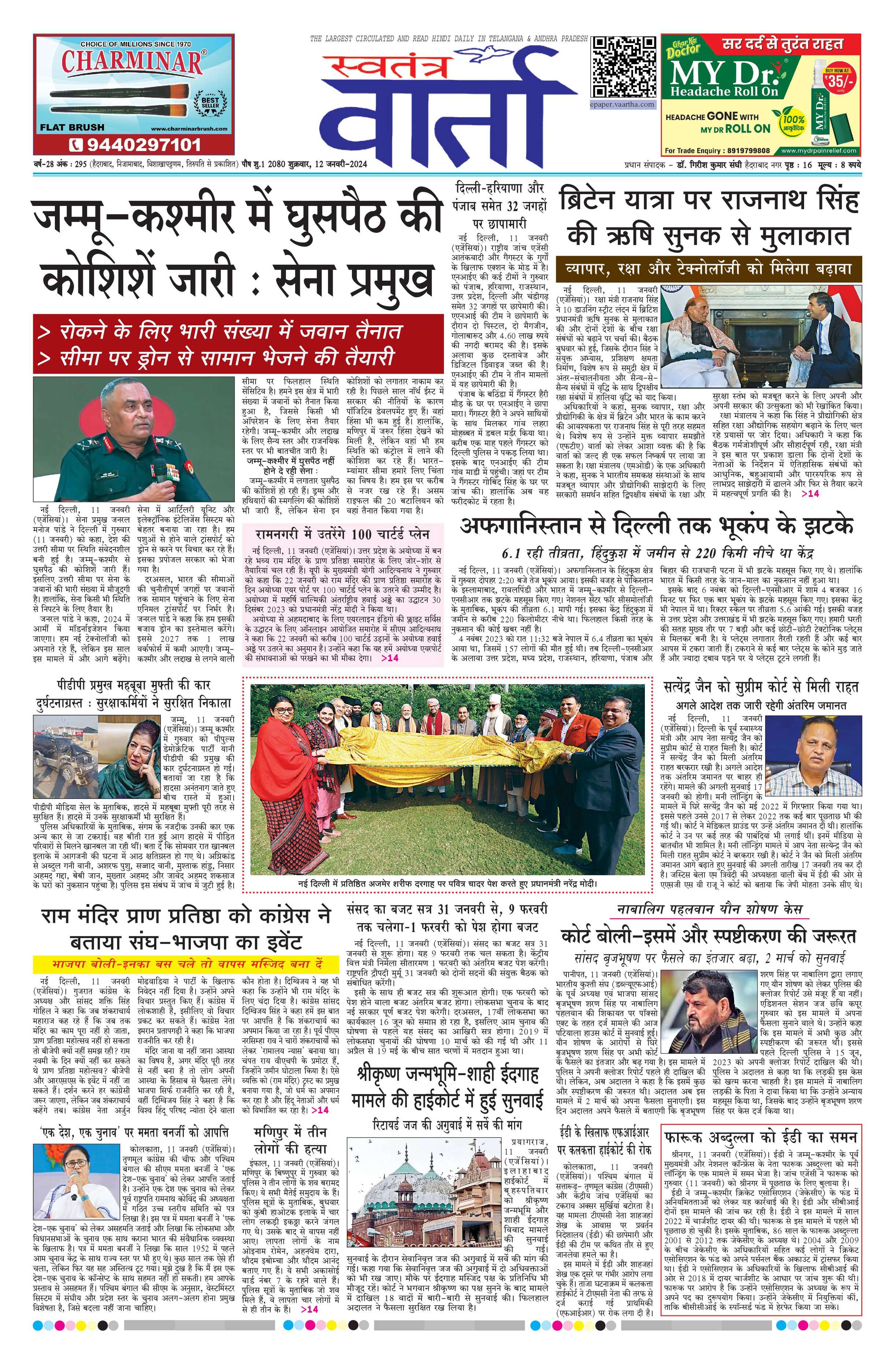 Swatantra Vaartha - 12 Jan 2024 - - Page 1