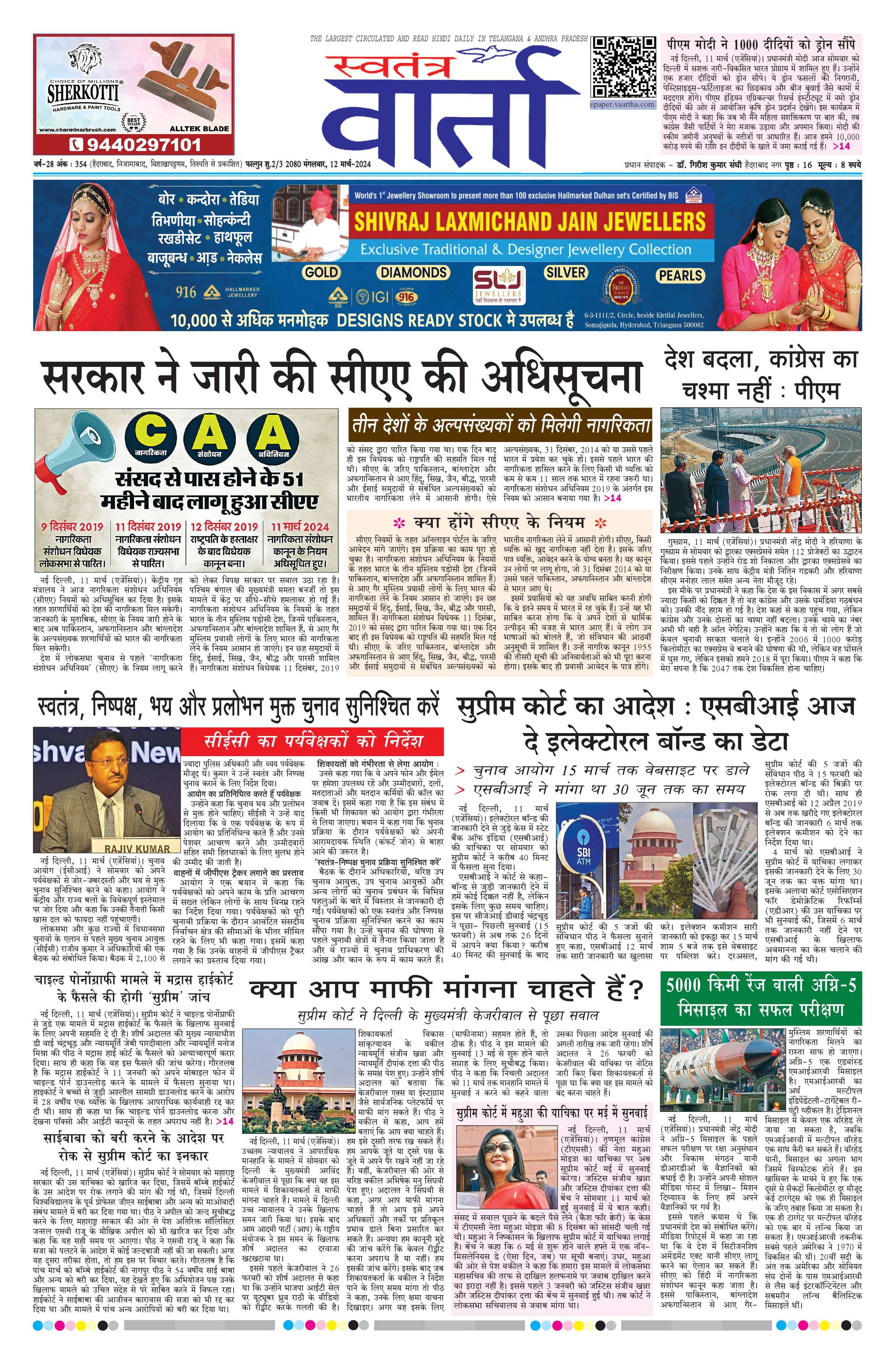 Swatantra Vaartha - 12 Mar 2024 - - Page 1