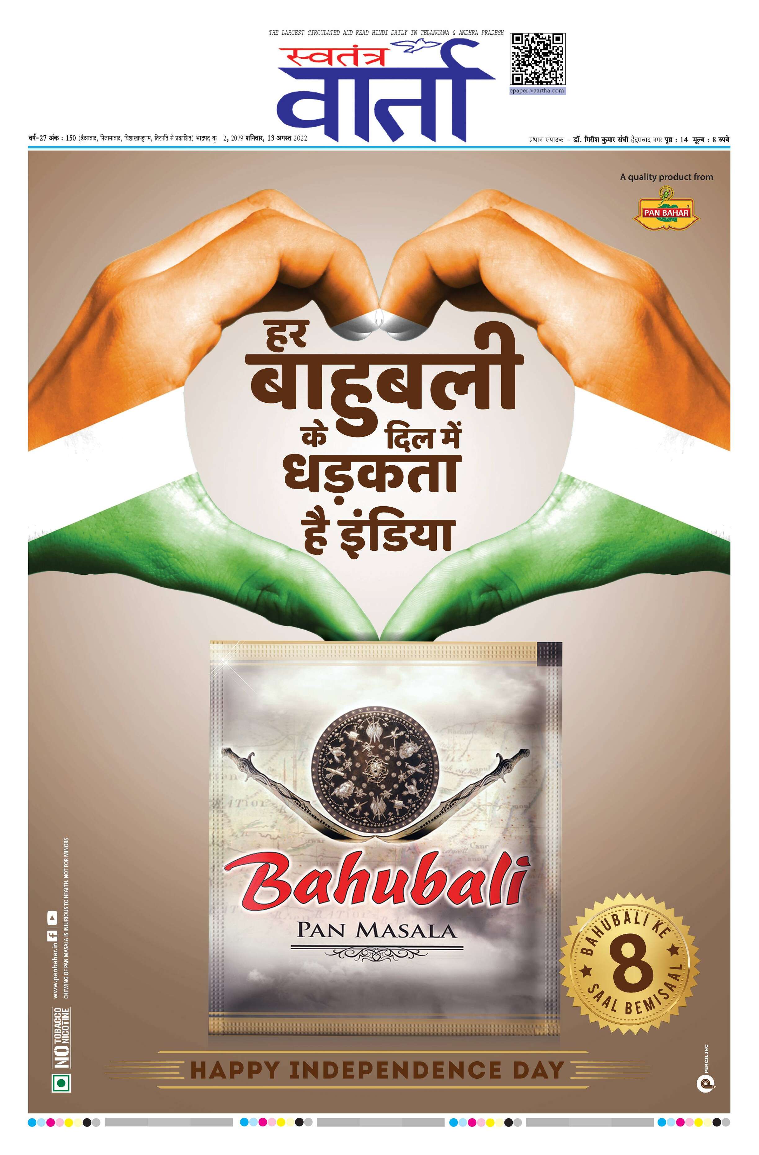 Swatantra Vaartha - 13 Aug 2022 - - Page 1