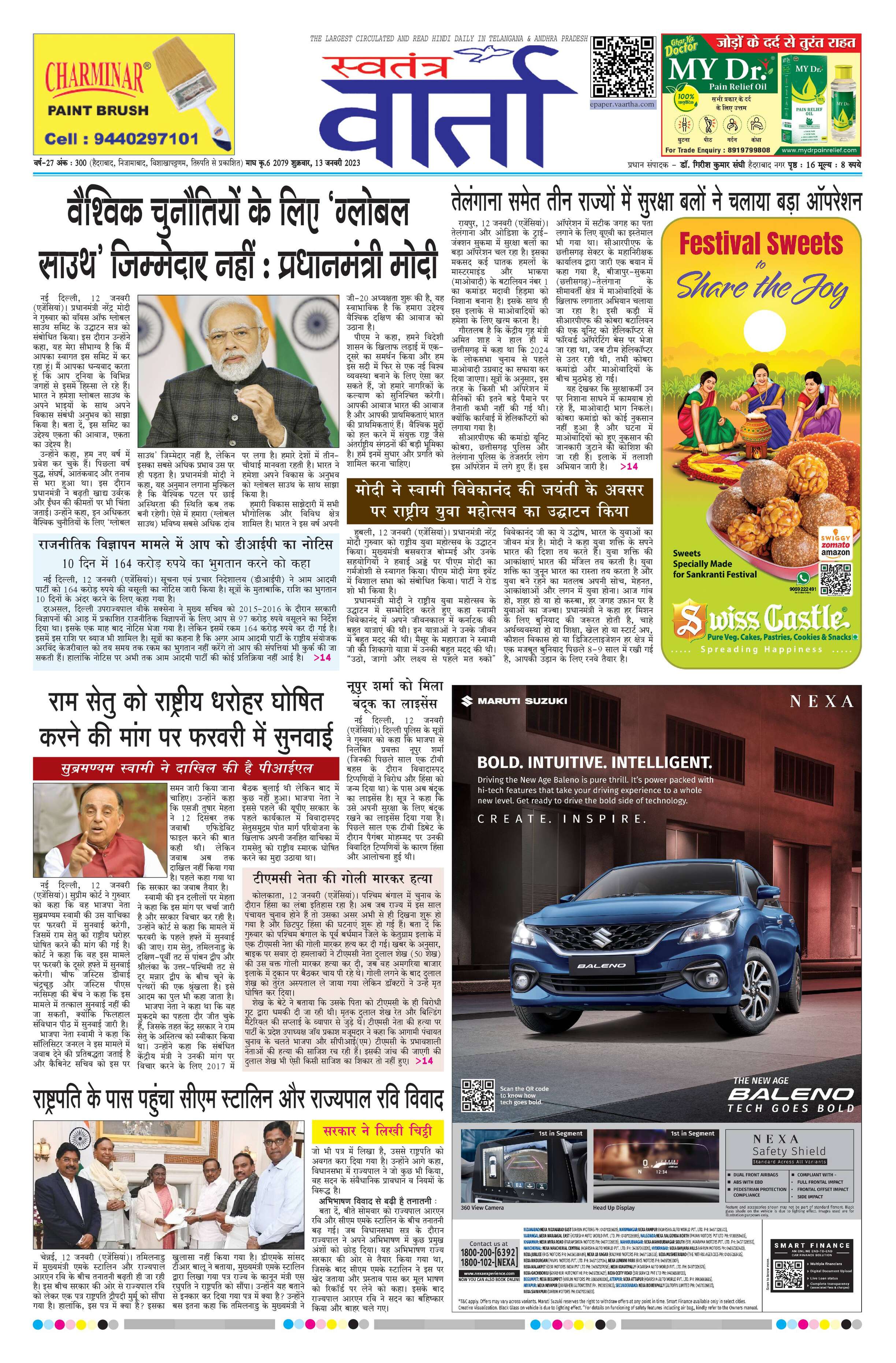Swatantra Vaartha - 13 Jan 2023 - - Page 1