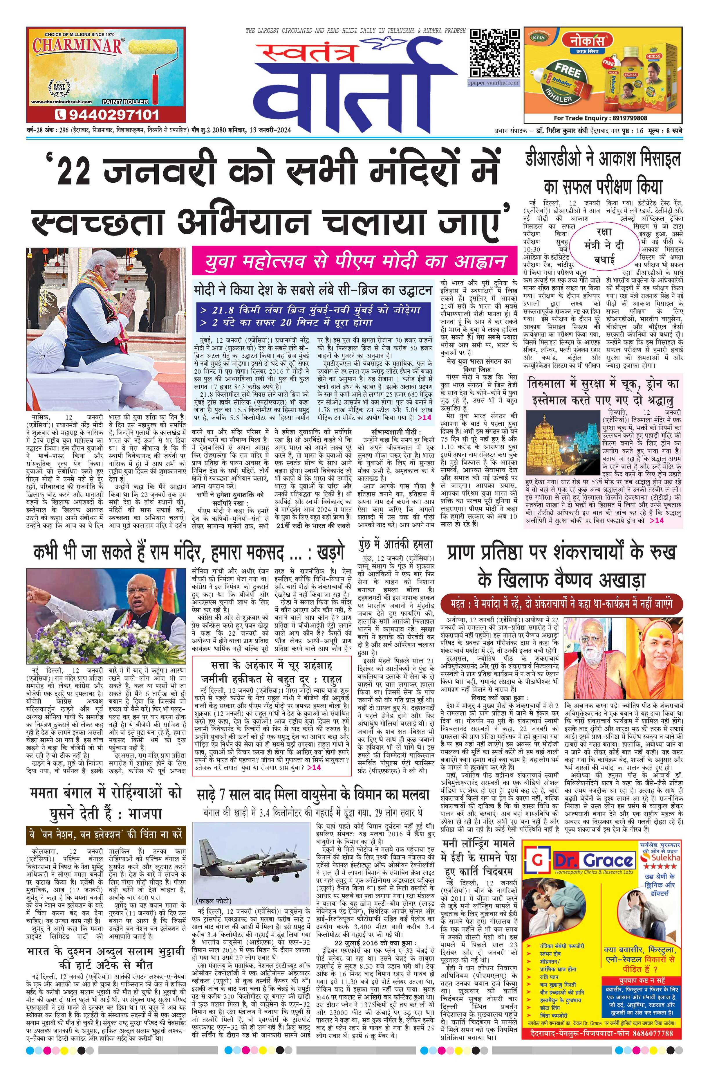 Swatantra Vaartha - 13 Jan 2024 - - Page 1