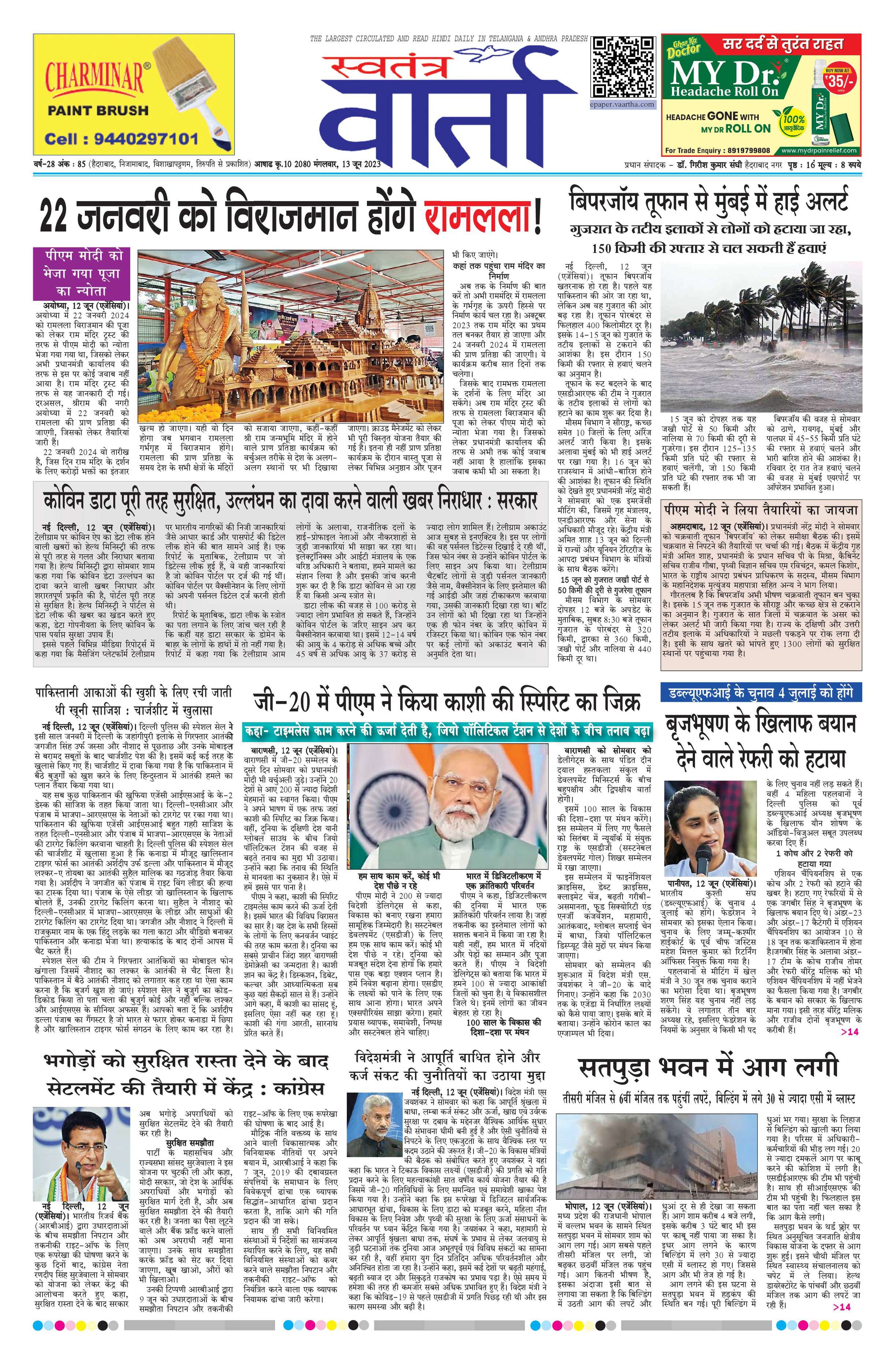 Swatantra Vaartha - 13 Jun 2023 - - Page 1