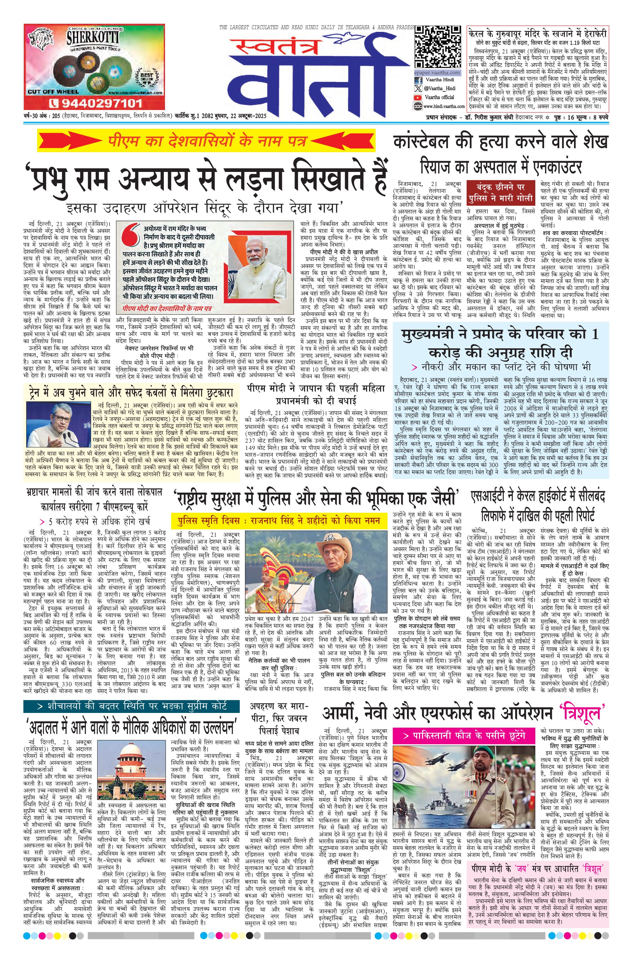 Swatantra Vaartha - 22 Oct 2025 - - Page 1