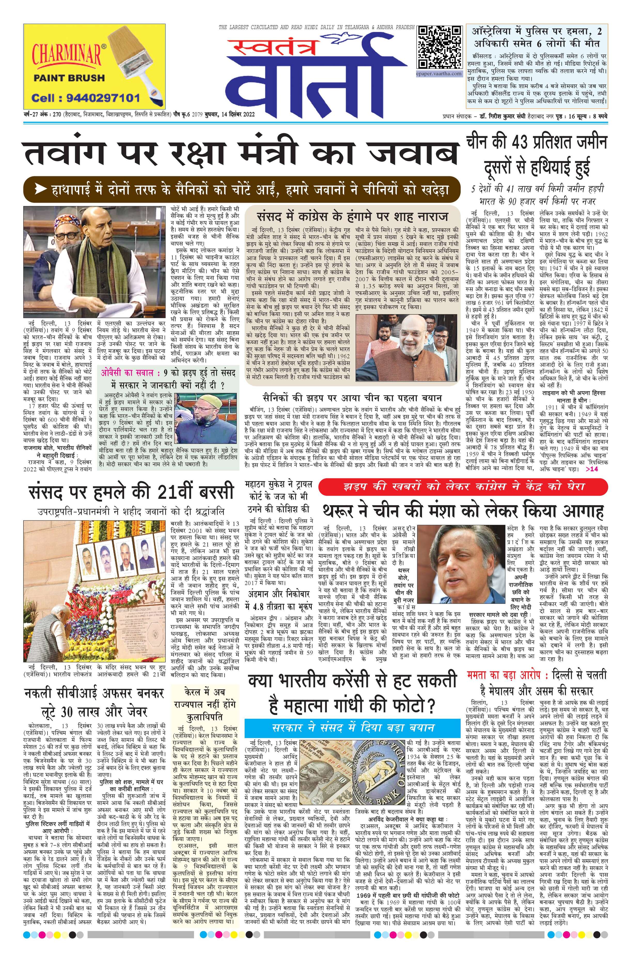 Swatantra Vaartha - 14 Dec 2022 - - Page 1