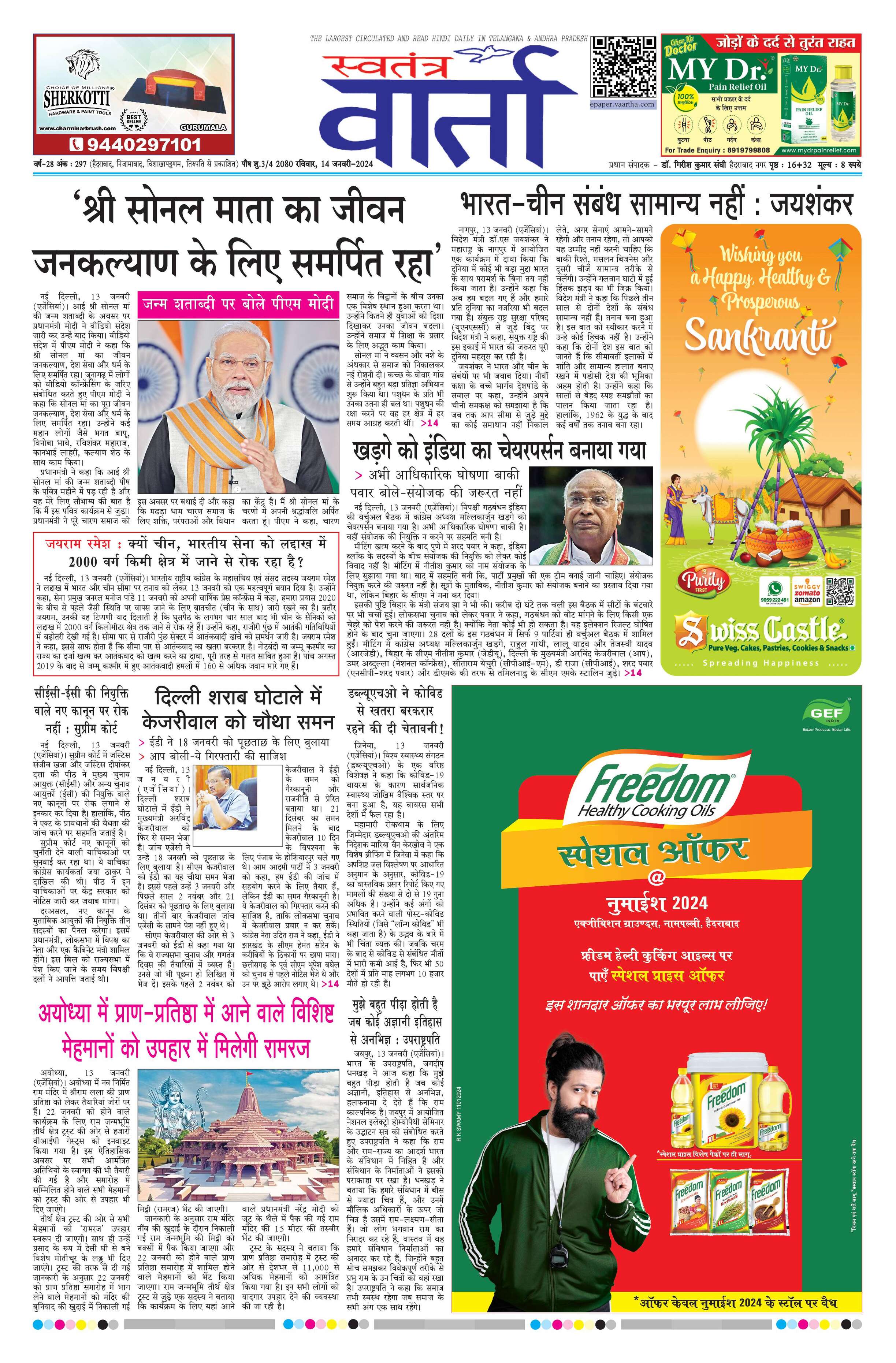 Swatantra Vaartha - 14 Jan 2024 - - Page 1