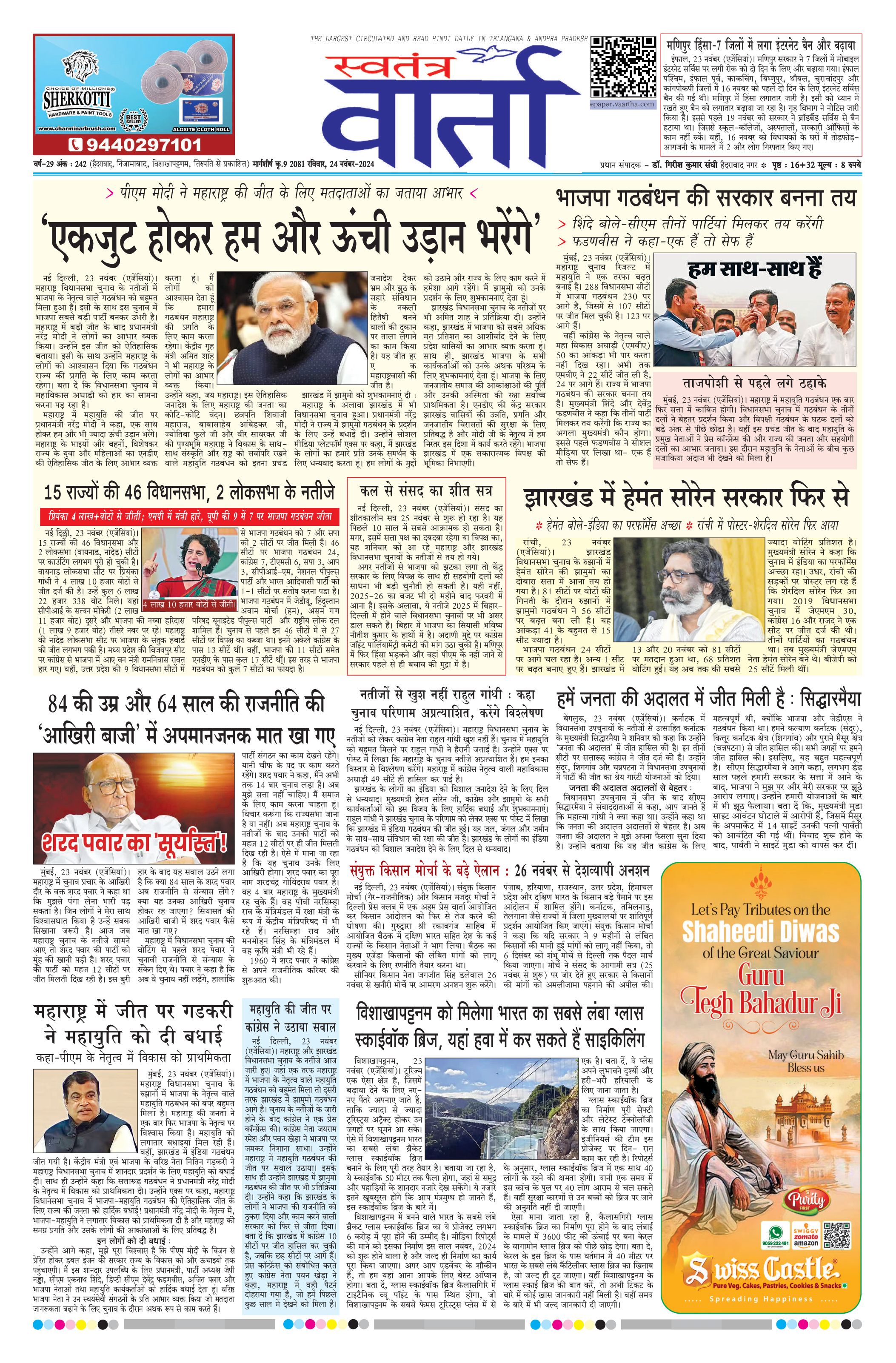 Swatantra Vaartha - 24 Nov 2024 - - Page 1