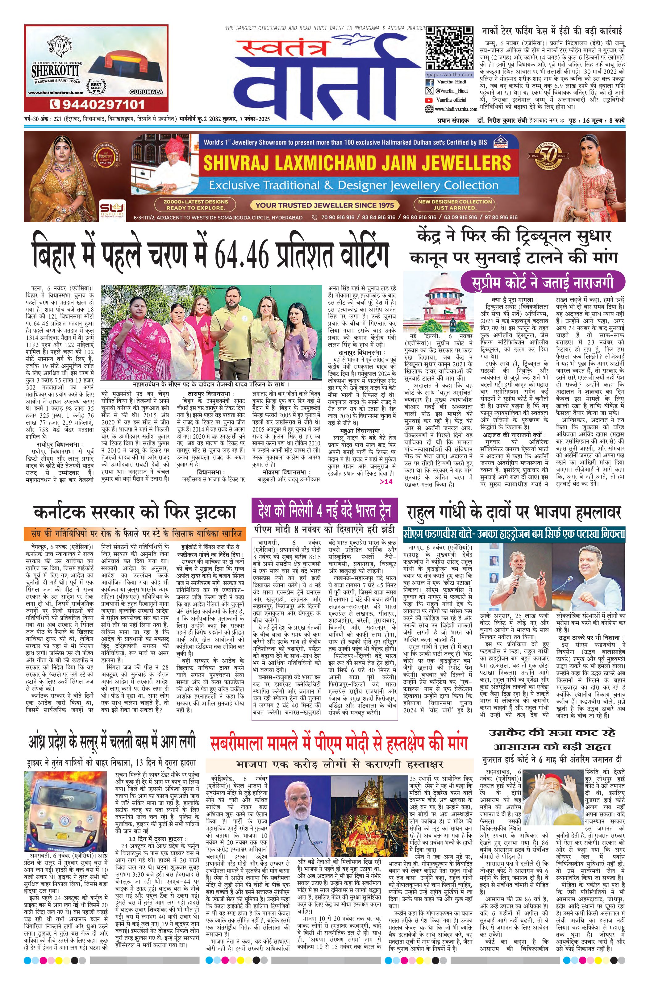 Swatantra Vaartha - 07 Nov 2025 - - Page 1
