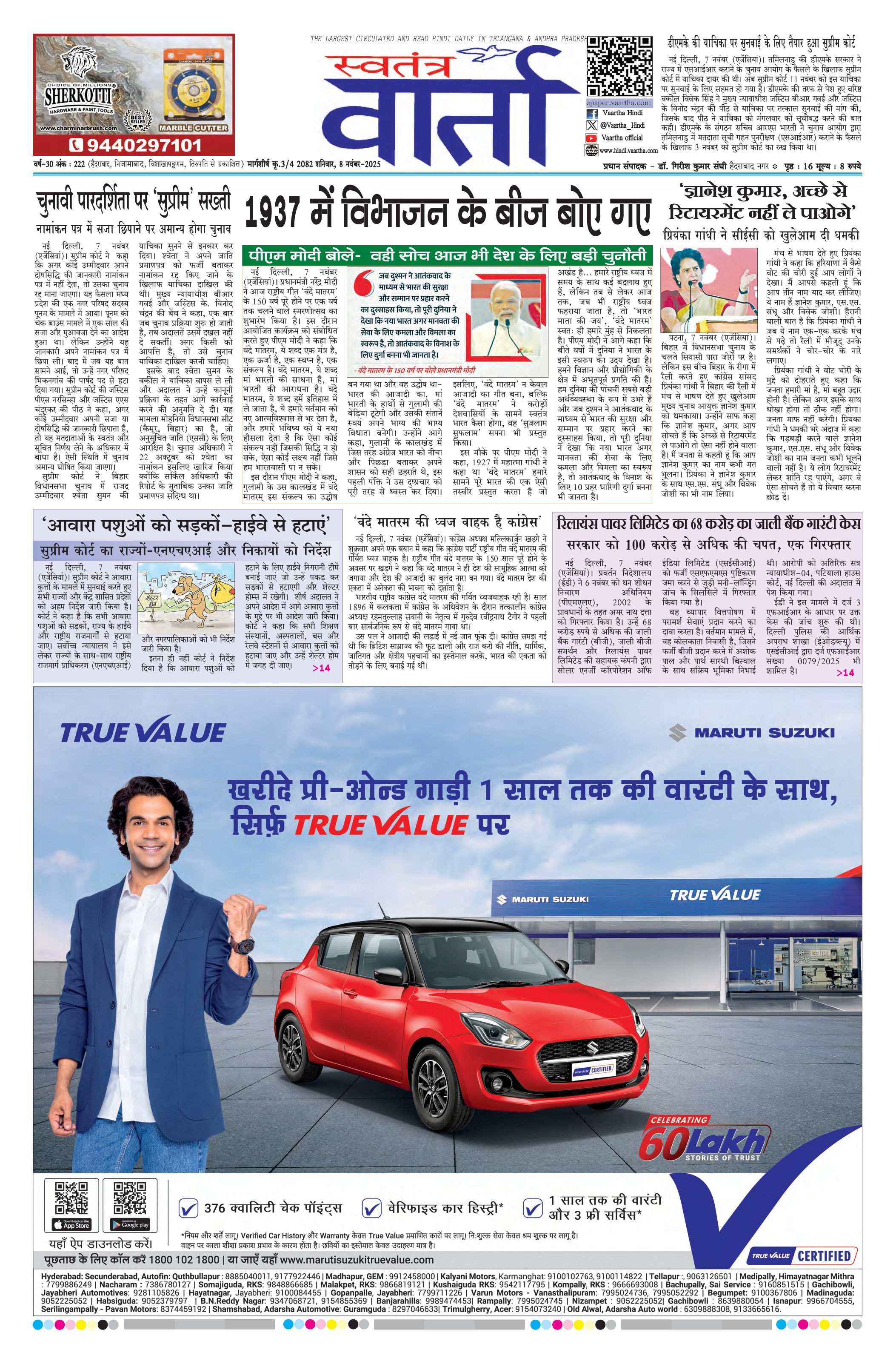 Swatantra Vaartha - 08 Nov 2025 - - Page 1