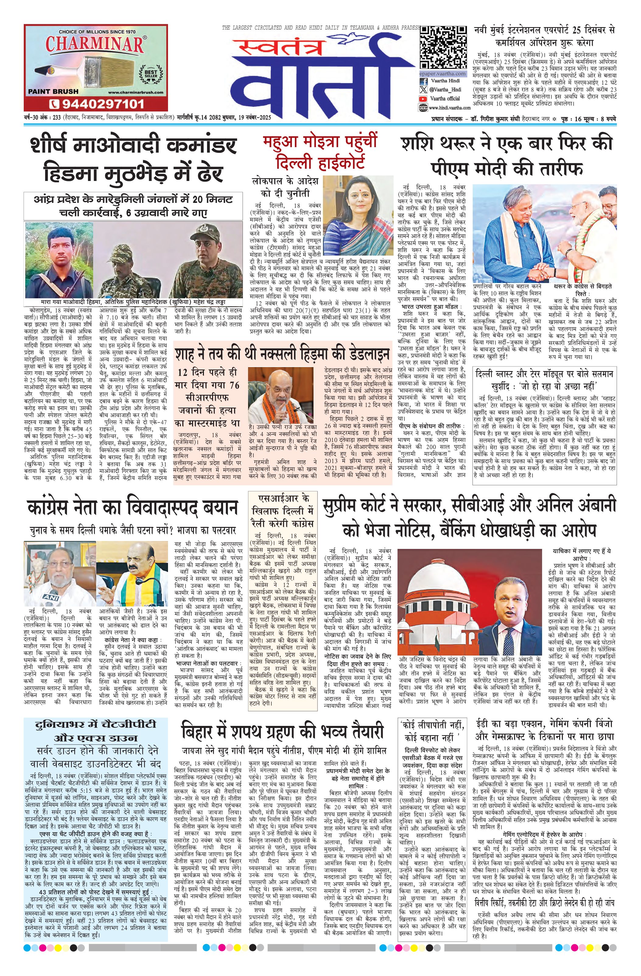 Swatantra Vaartha - 19 Nov 2025 - - Page 1