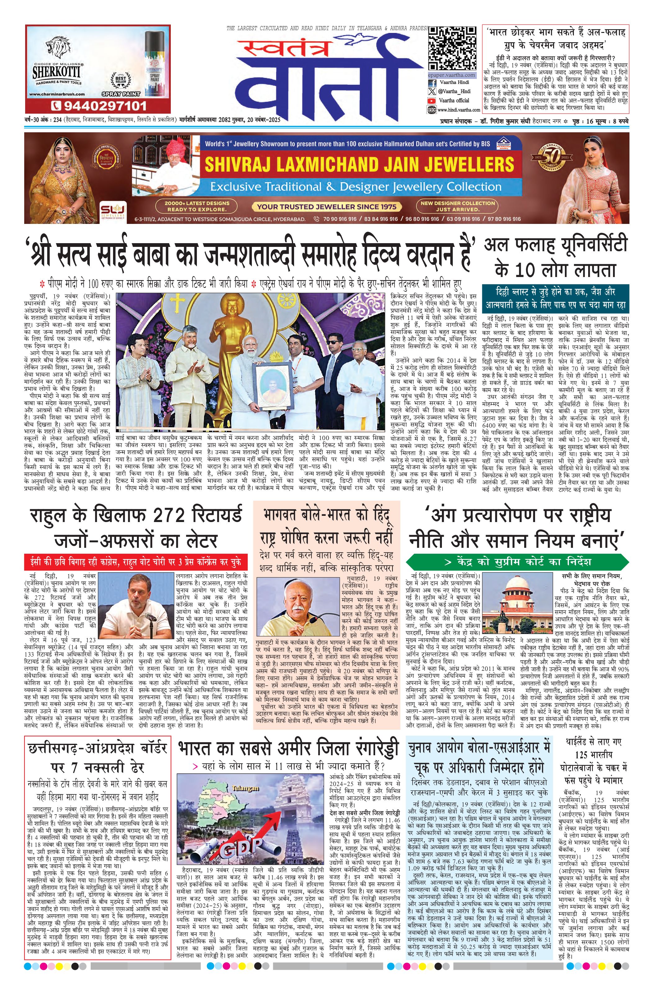 Swatantra Vaartha - 20 Nov 2025 - - Page 1