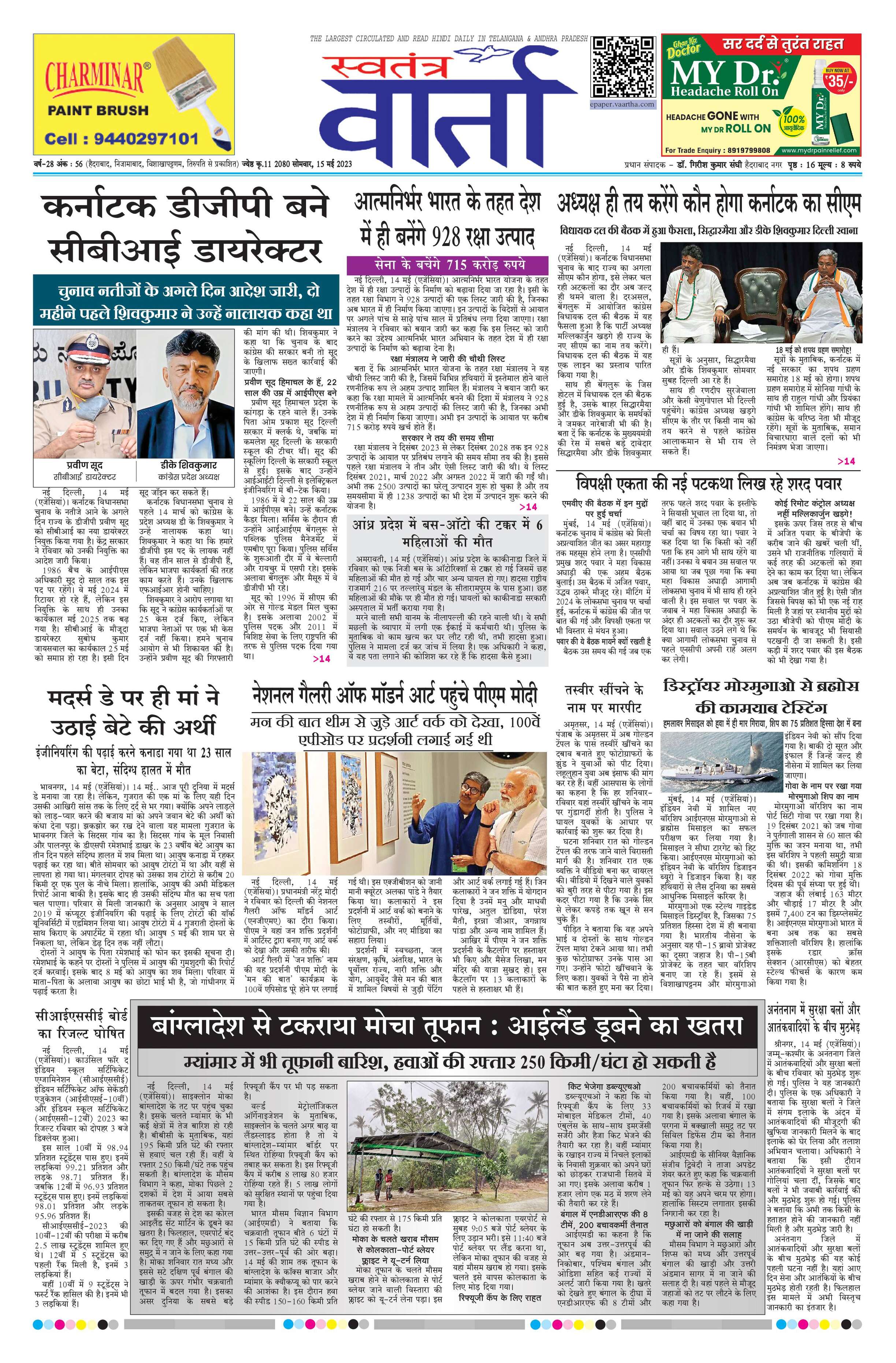 Swatantra Vaartha - 15 May 2023 - - Page 1