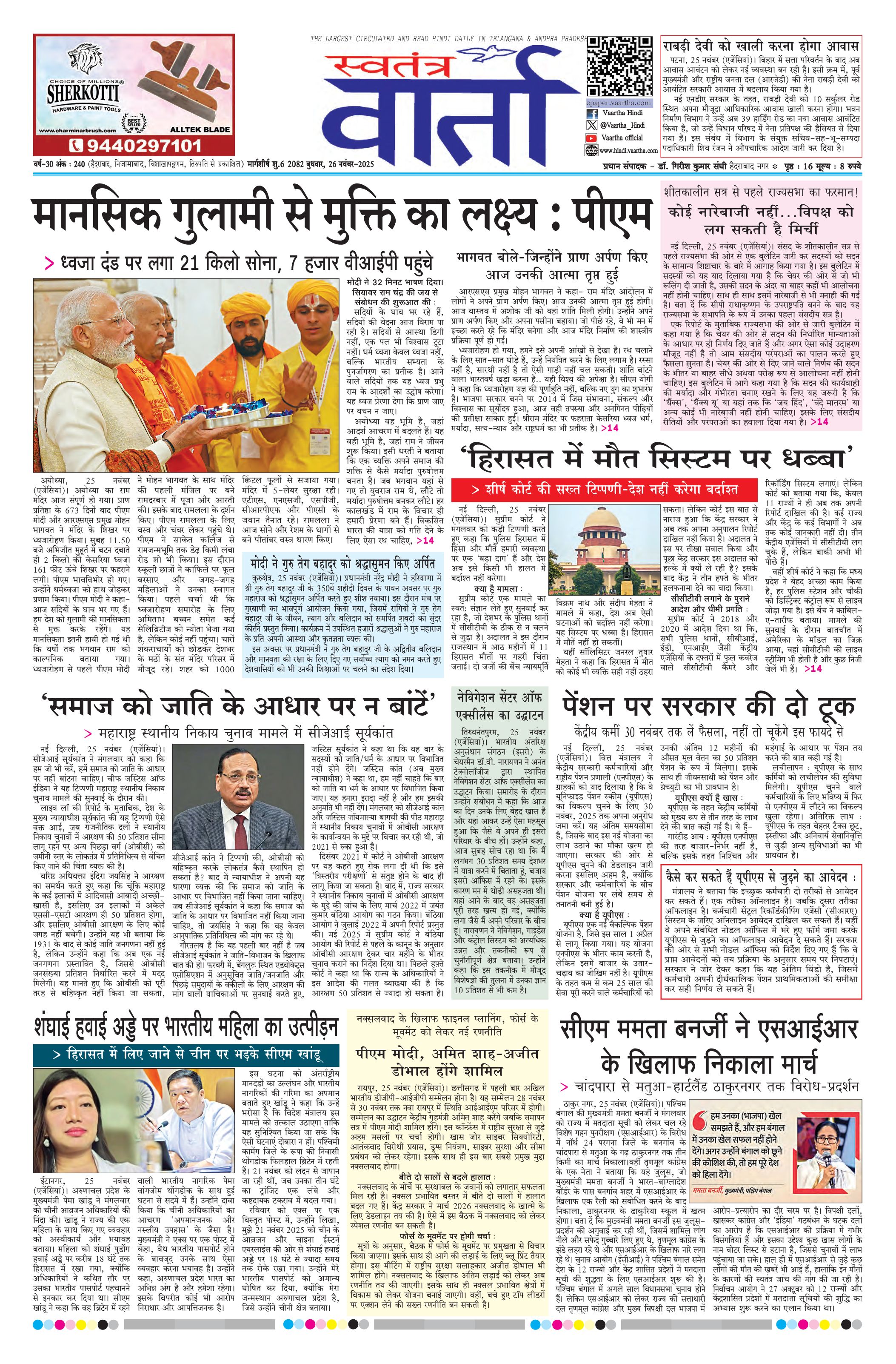 Swatantra Vaartha - 26 Nov 2025 - - Page 1