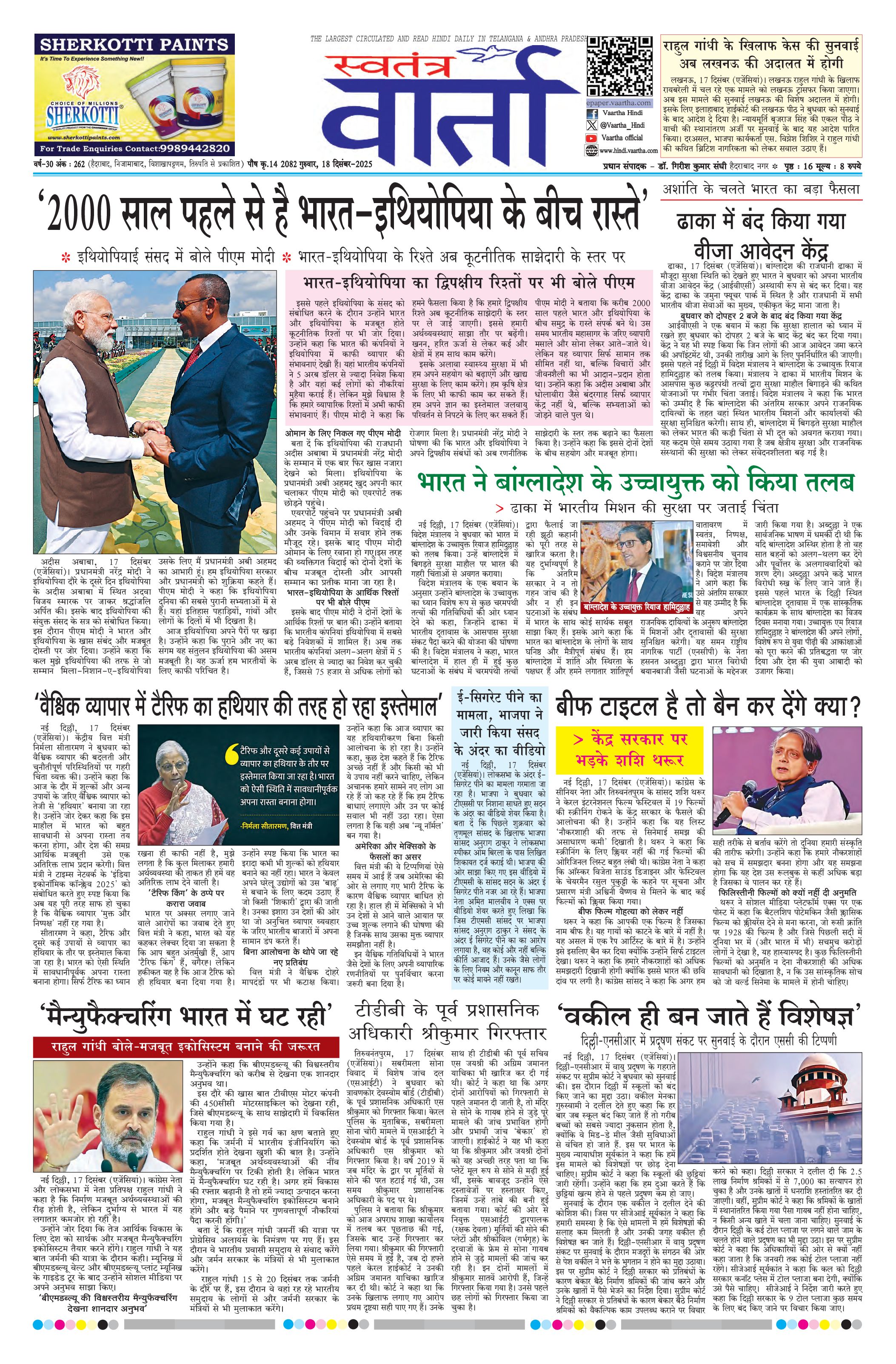 Swatantra Vaartha - 18 Dec 2025 - - Page 1