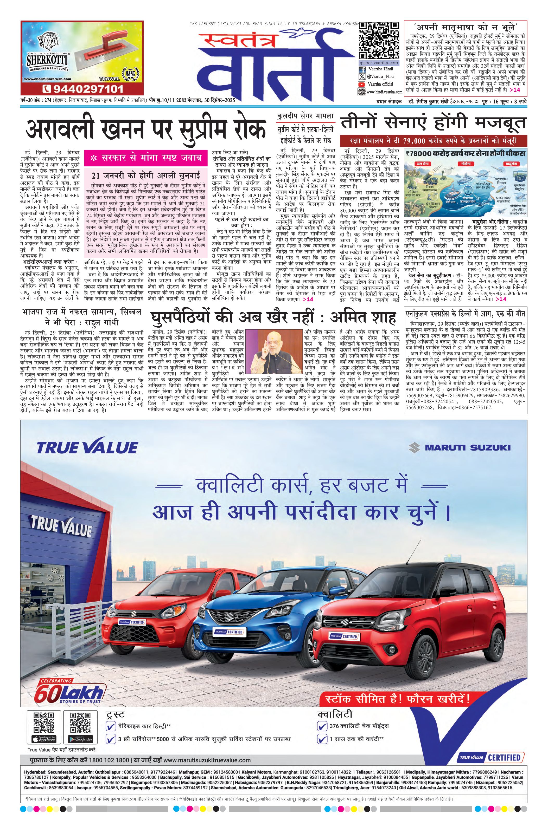 Swatantra Vaartha - 30 Dec 2025 - - Page 1
