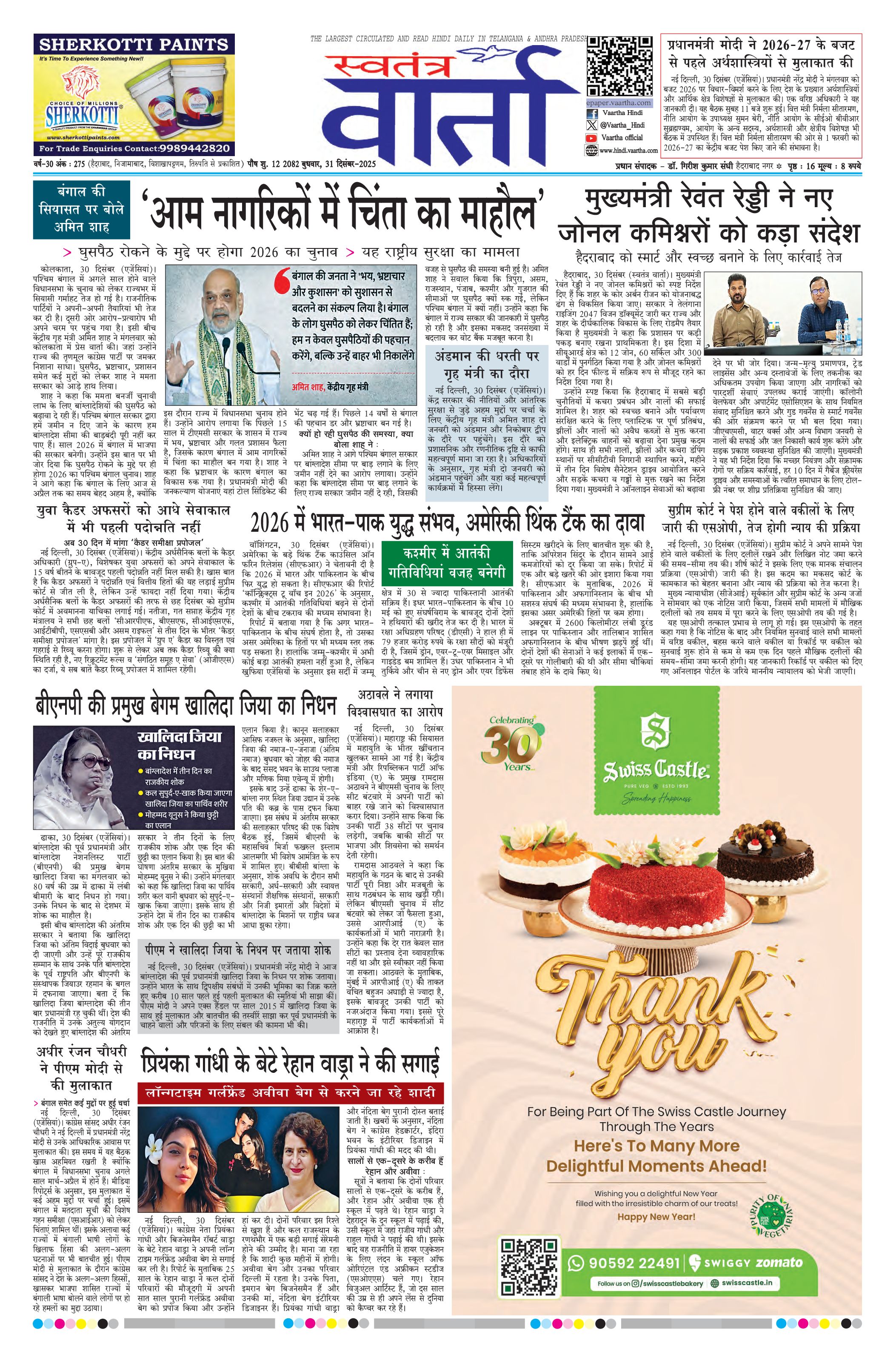 Swatantra Vaartha - 31 Dec 2025 - - Page 1