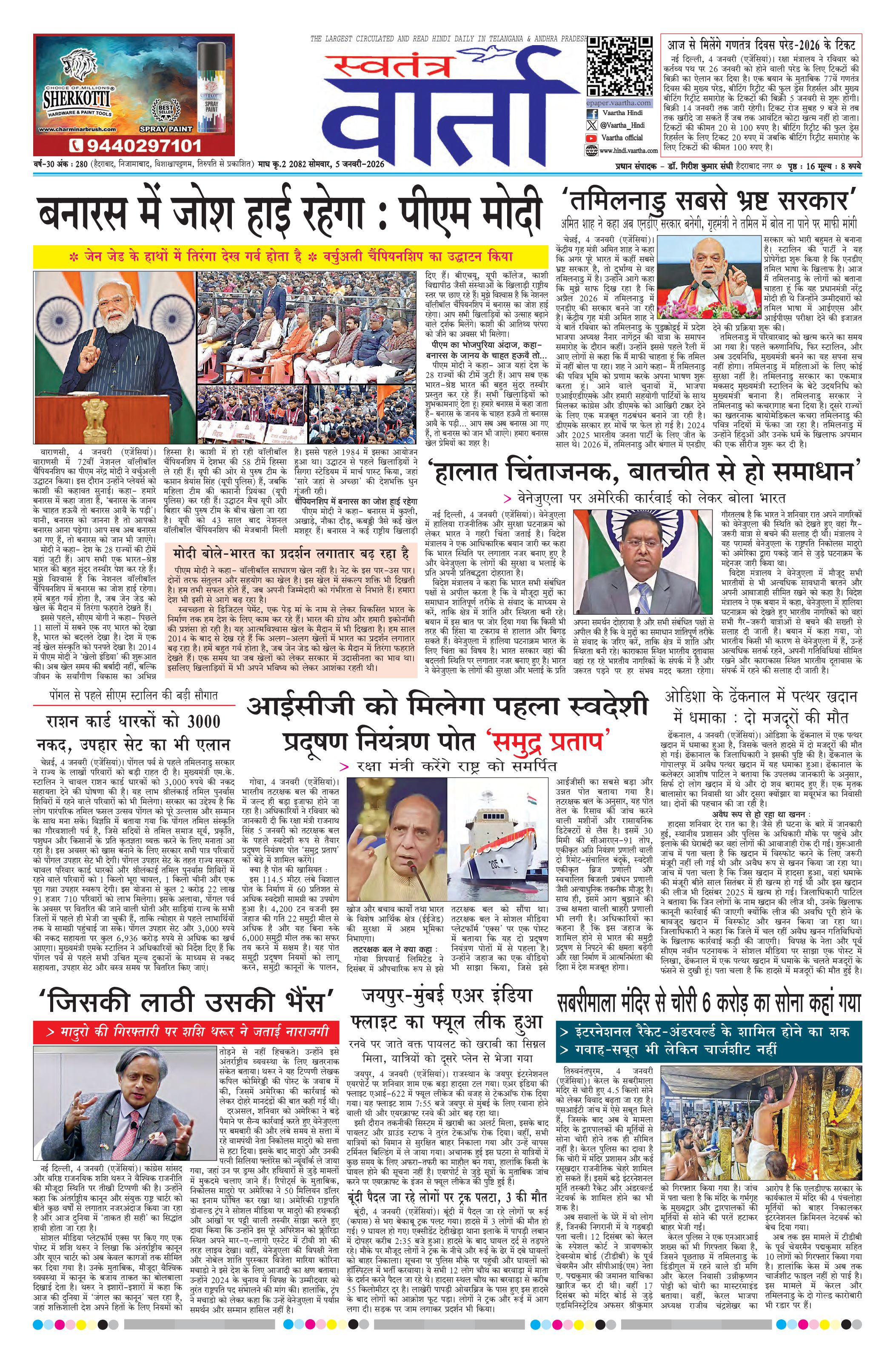 Swatantra Vaartha - 05 Jan 2026 - - Page 1