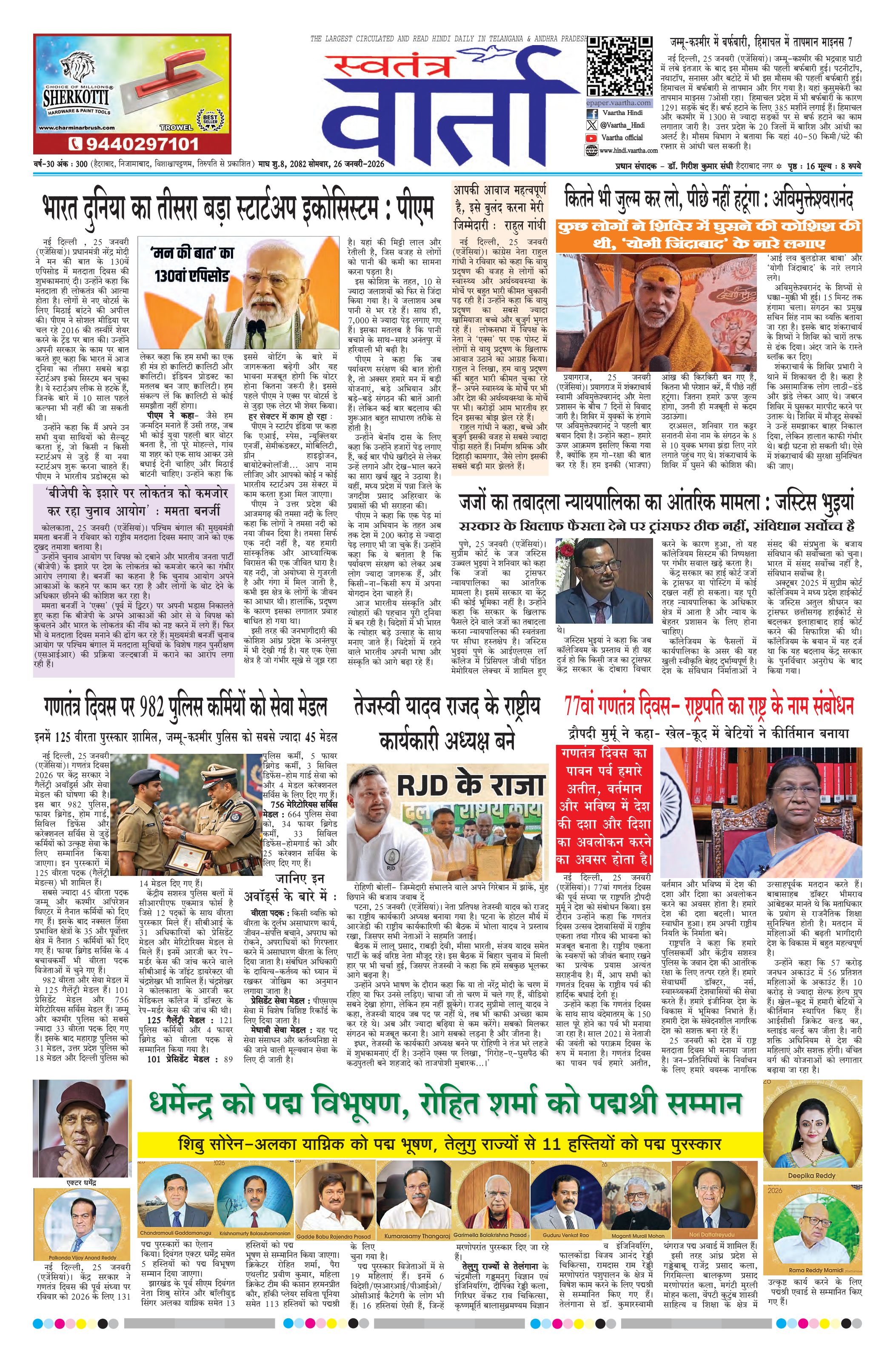 Swatantra Vaartha - 26 Jan 2026 - - Page 1