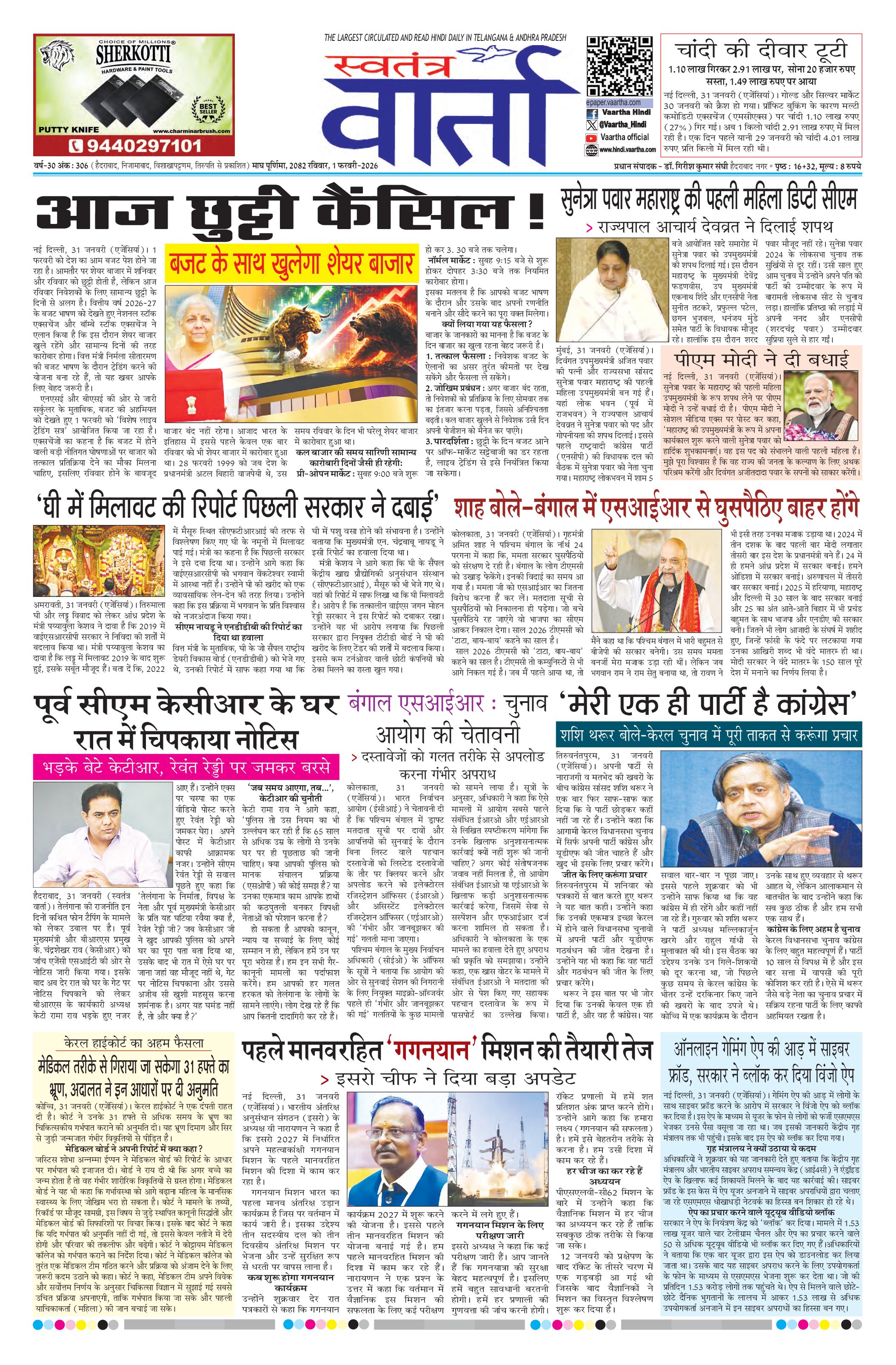 Swatantra Vaartha - 01 Feb 2026 - - Page 1