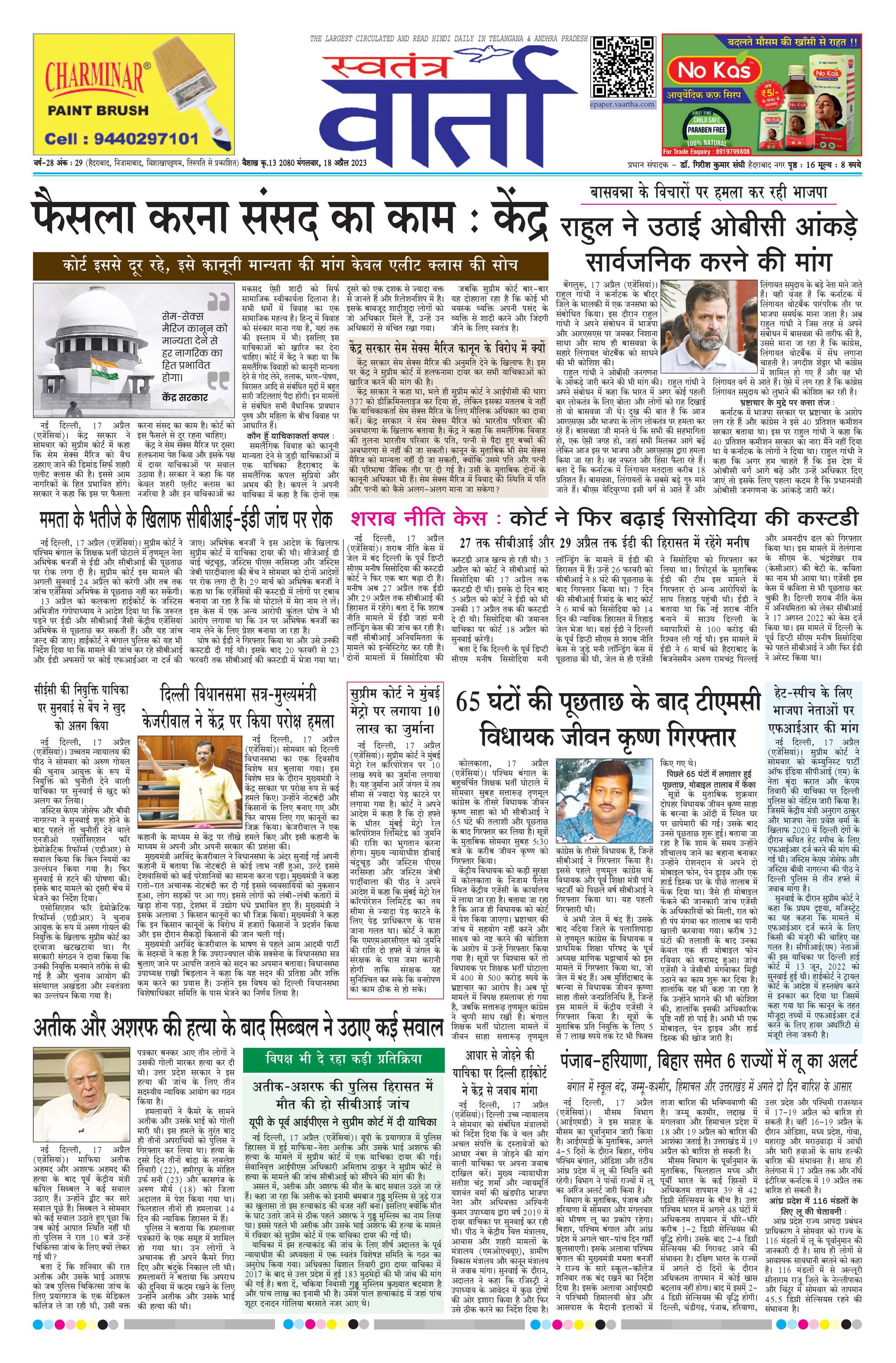 Swatantra Vaartha - 18 Apr 2023 - - Page 1