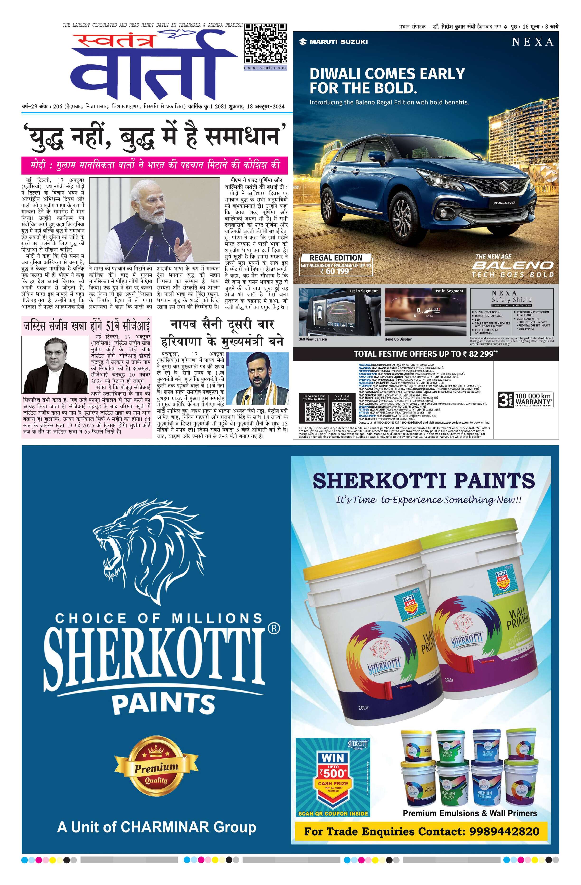 Swatantra Vaartha - 18 Oct 2024 - - Page 1