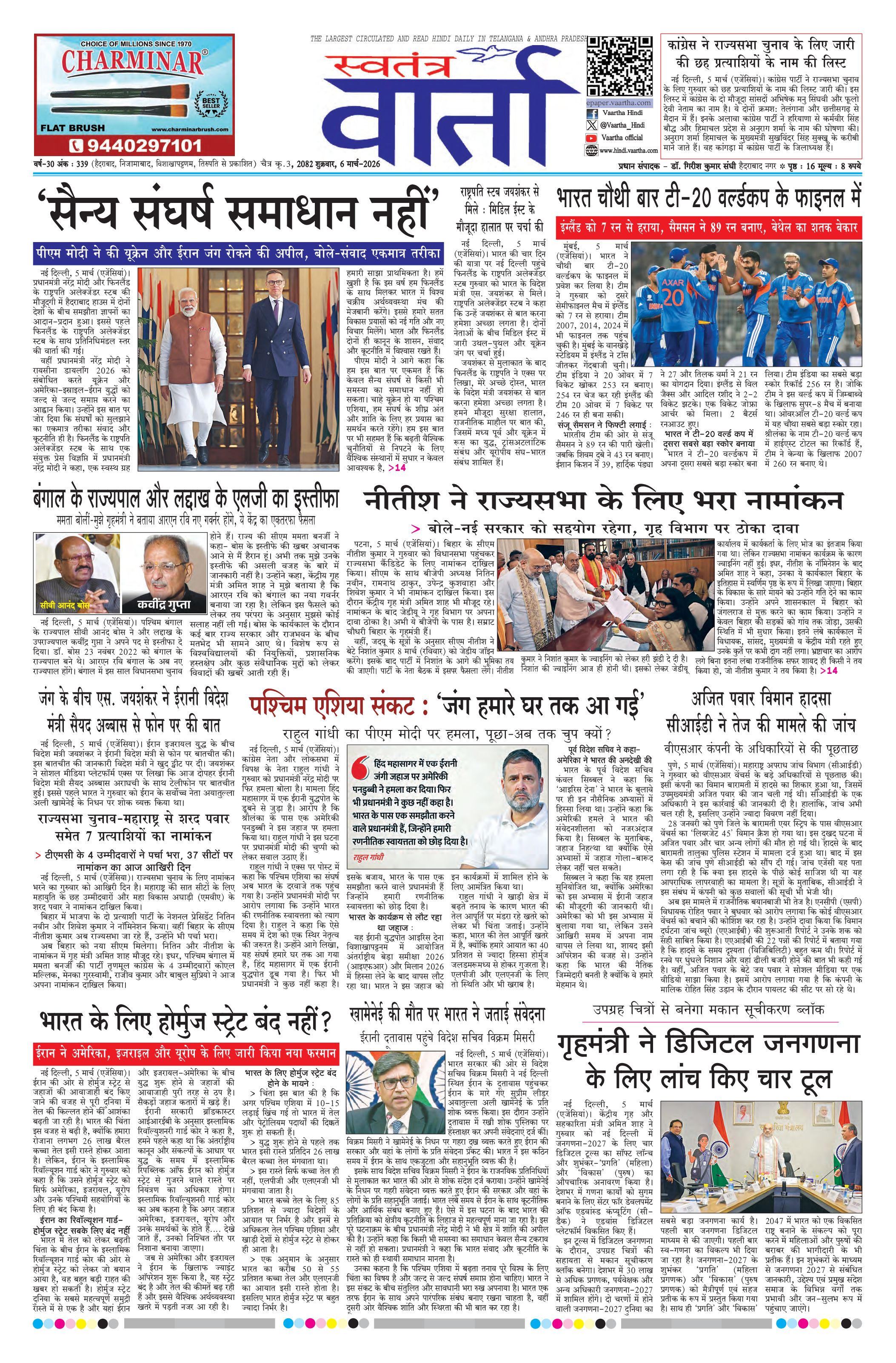 Swatantra Vaartha - 06 Mar 2026 - - Page 1