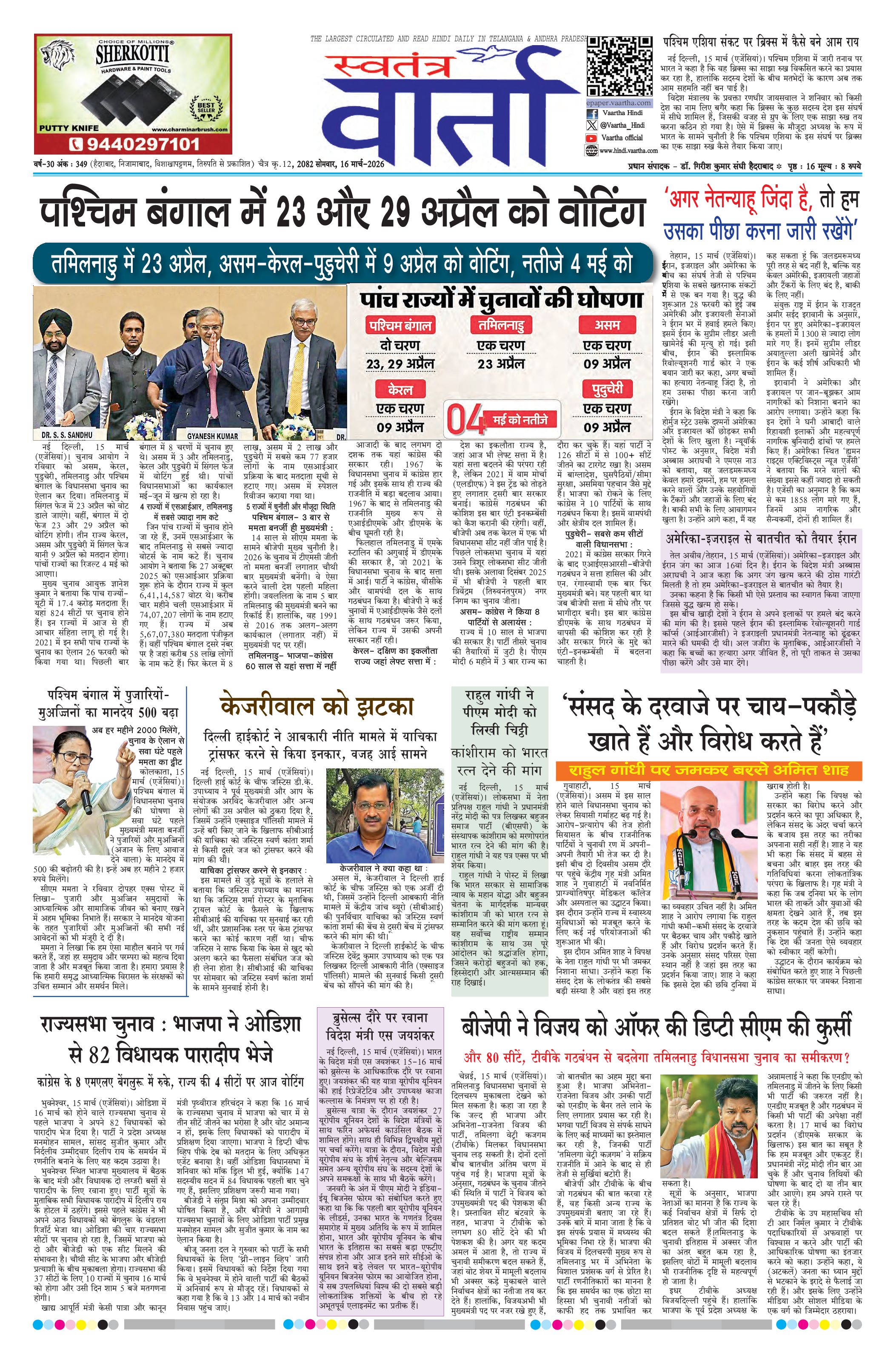 Swatantra Vaartha - 16 Mar 2026 - - Page 1