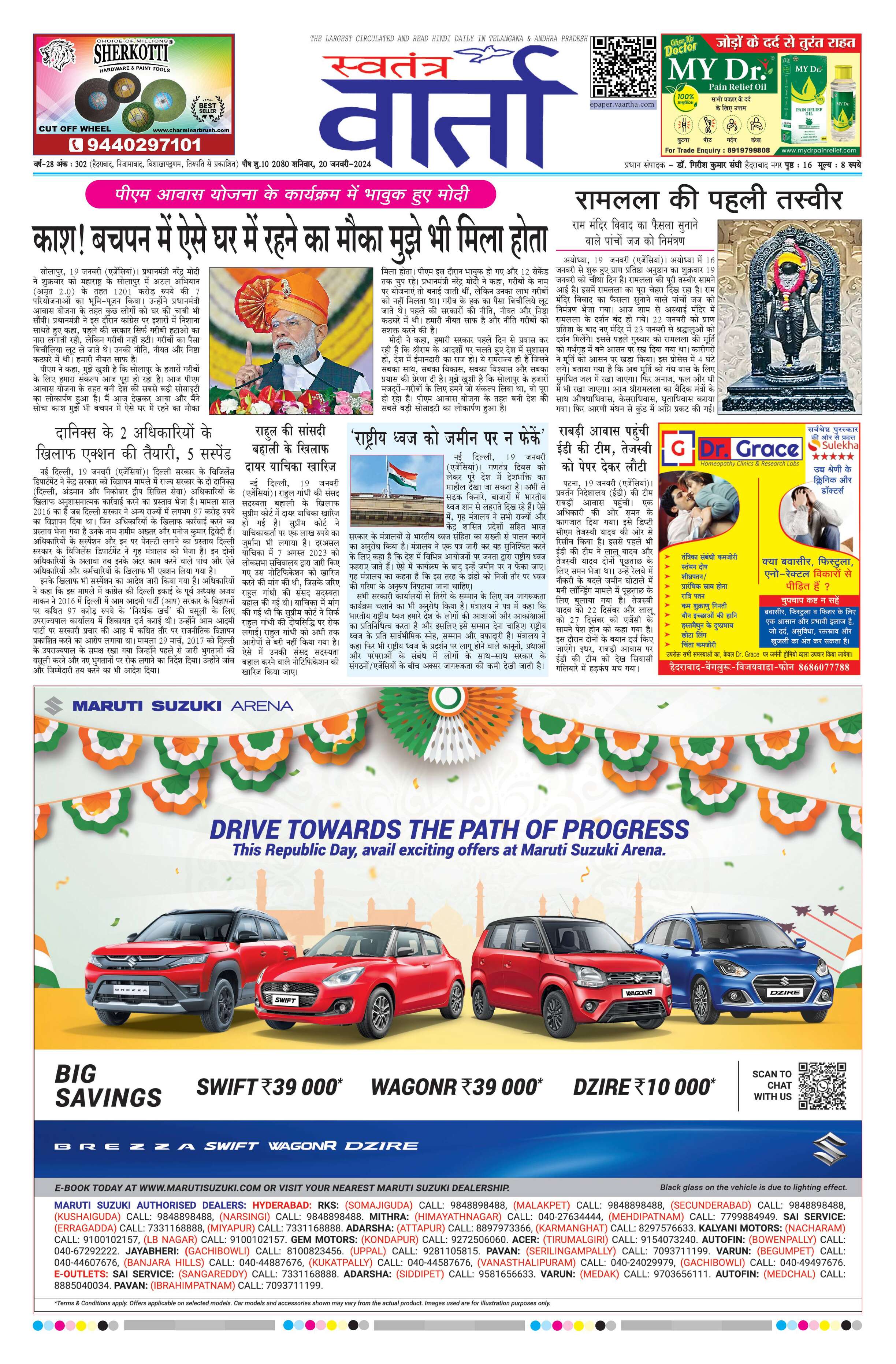 Swatantra Vaartha - 20 Jan 2024 - - Page 1