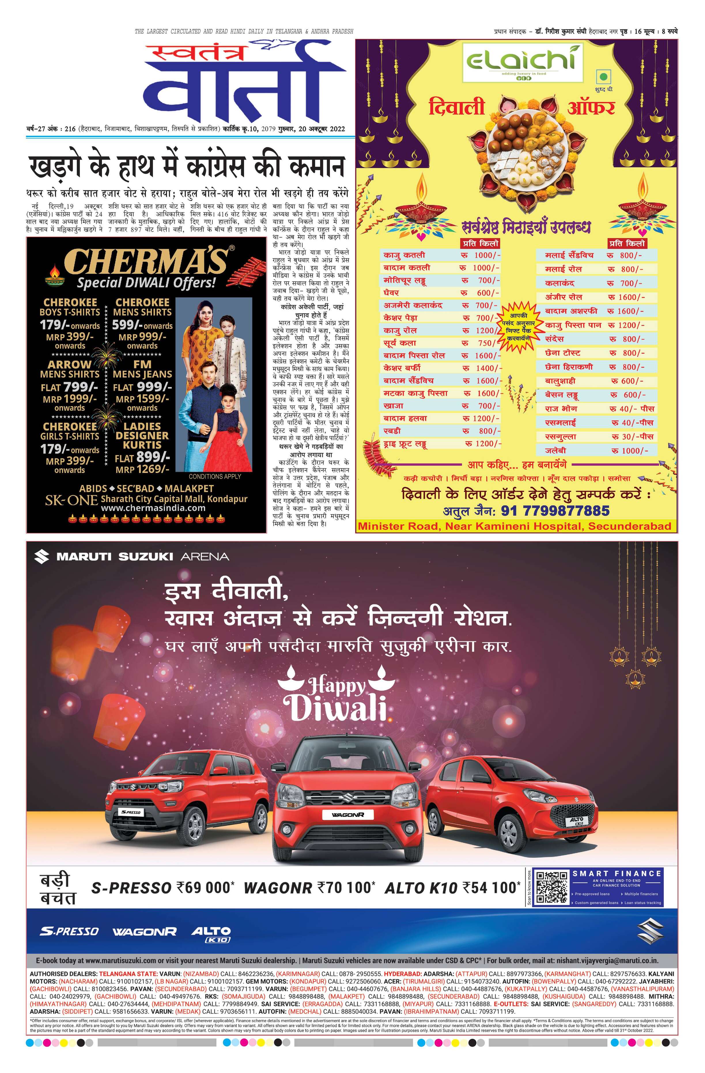 Swatantra Vaartha - 20 Oct 2022 - - Page 1
