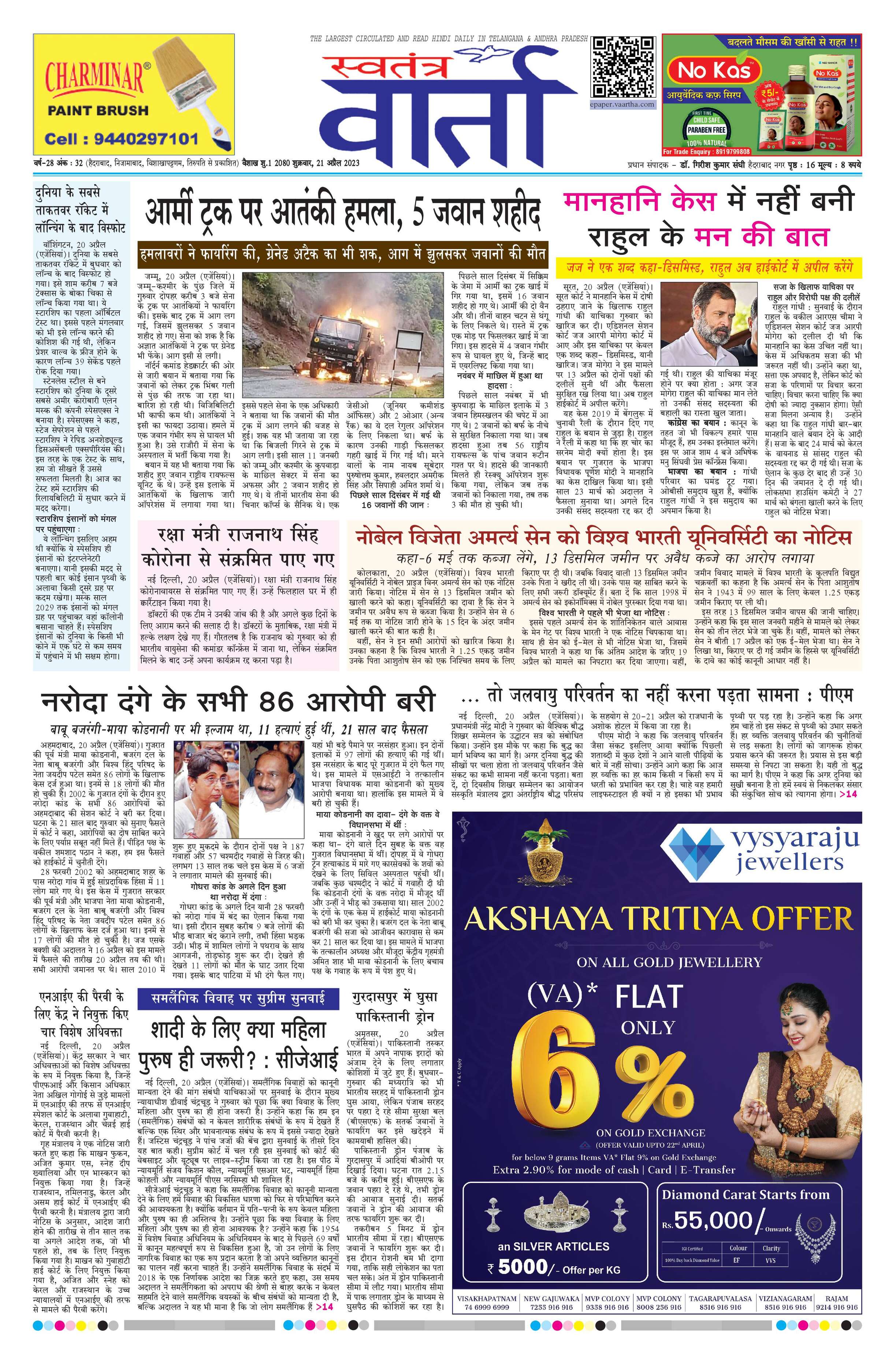 Swatantra Vaartha - 21 Apr 2023 - - Page 1