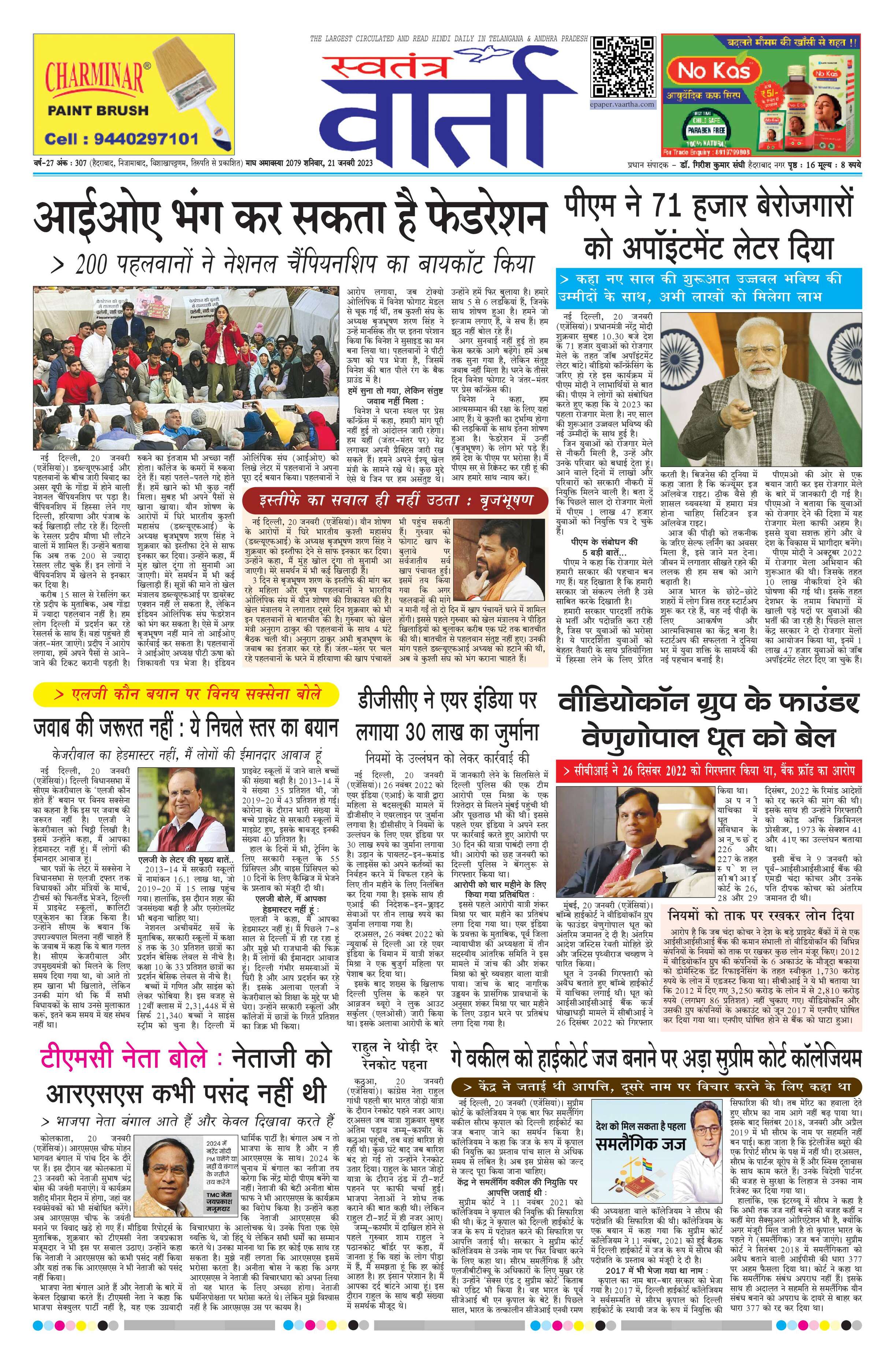 Swatantra Vaartha - 21 Jan 2023 - - Page 1