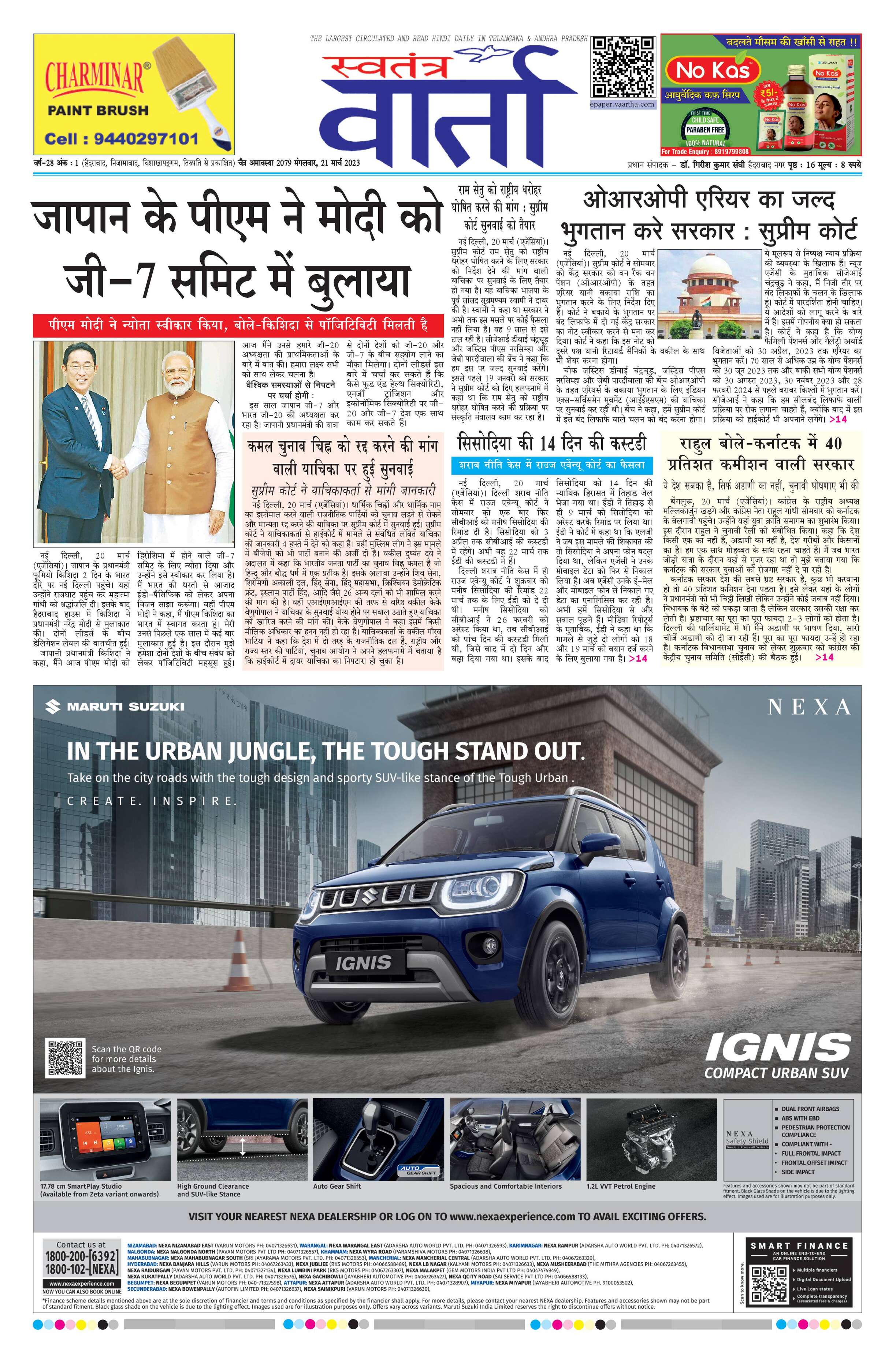 Swatantra Vaartha - 21 Mar 2023 - - Page 1