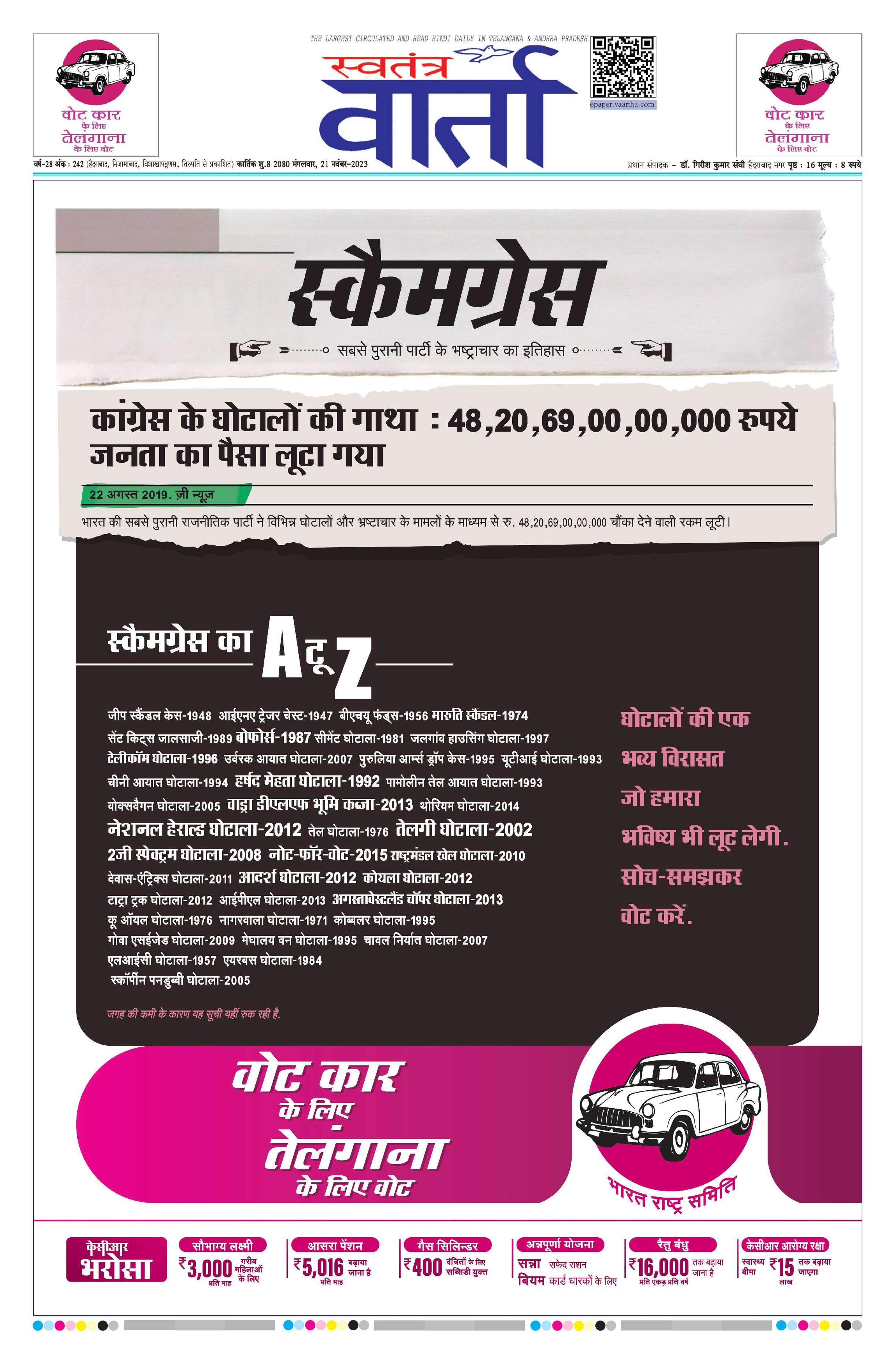 Swatantra Vaartha - 21 Nov 2023 - - Page 1