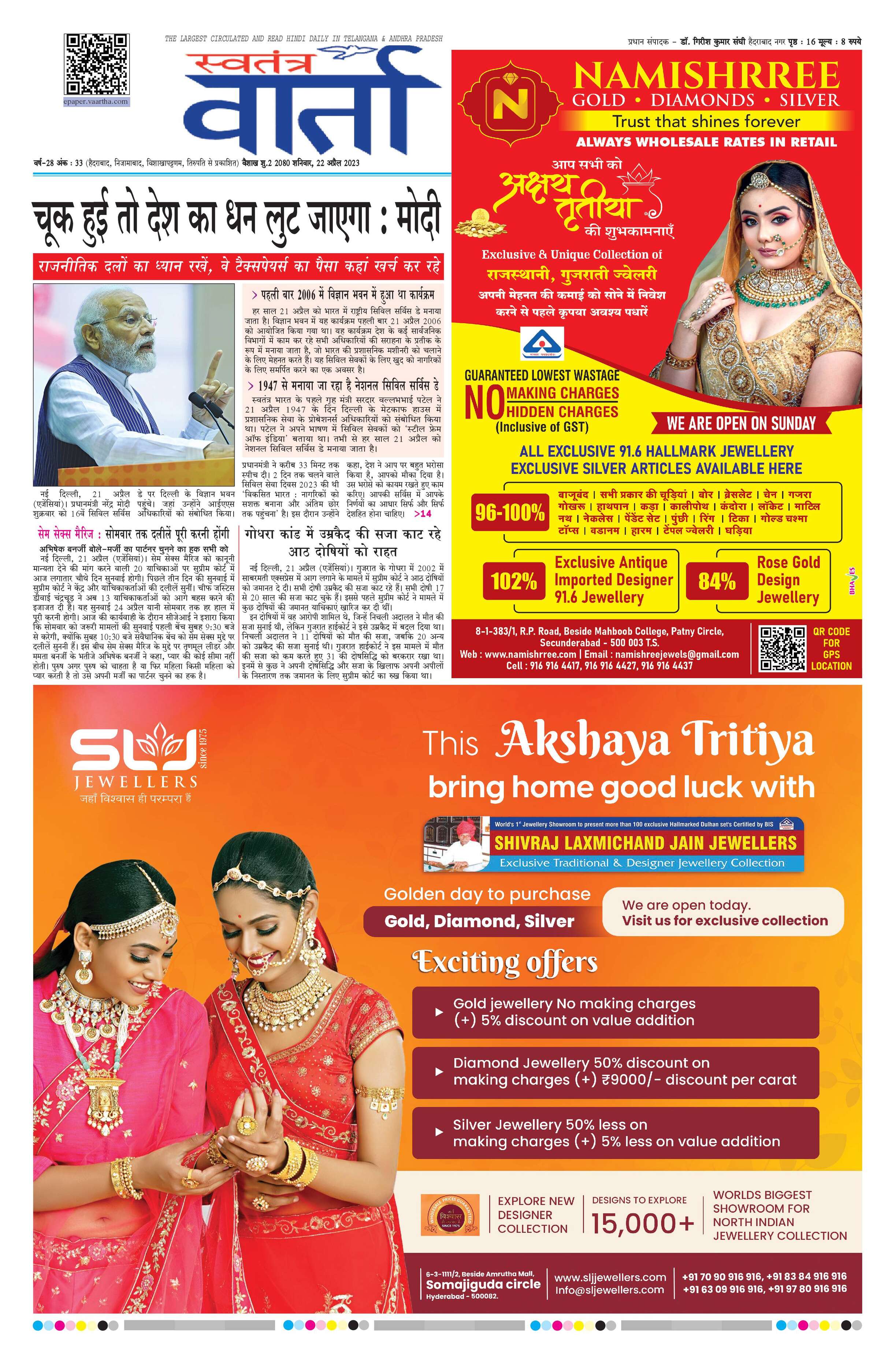 Swatantra Vaartha - 22 Apr 2023 - - Page 1