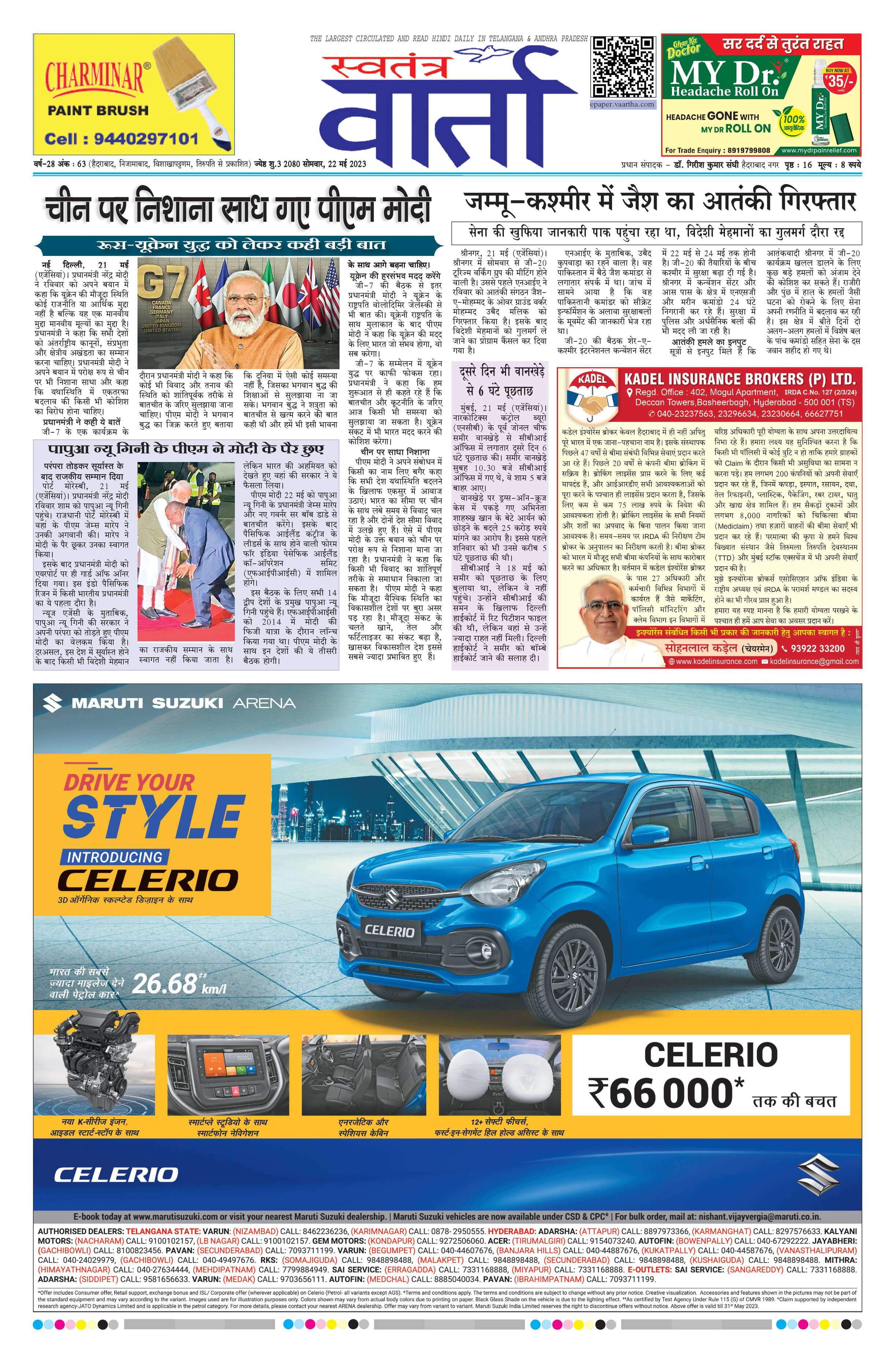 Swatantra Vaartha - 22 May 2023 - - Page 1