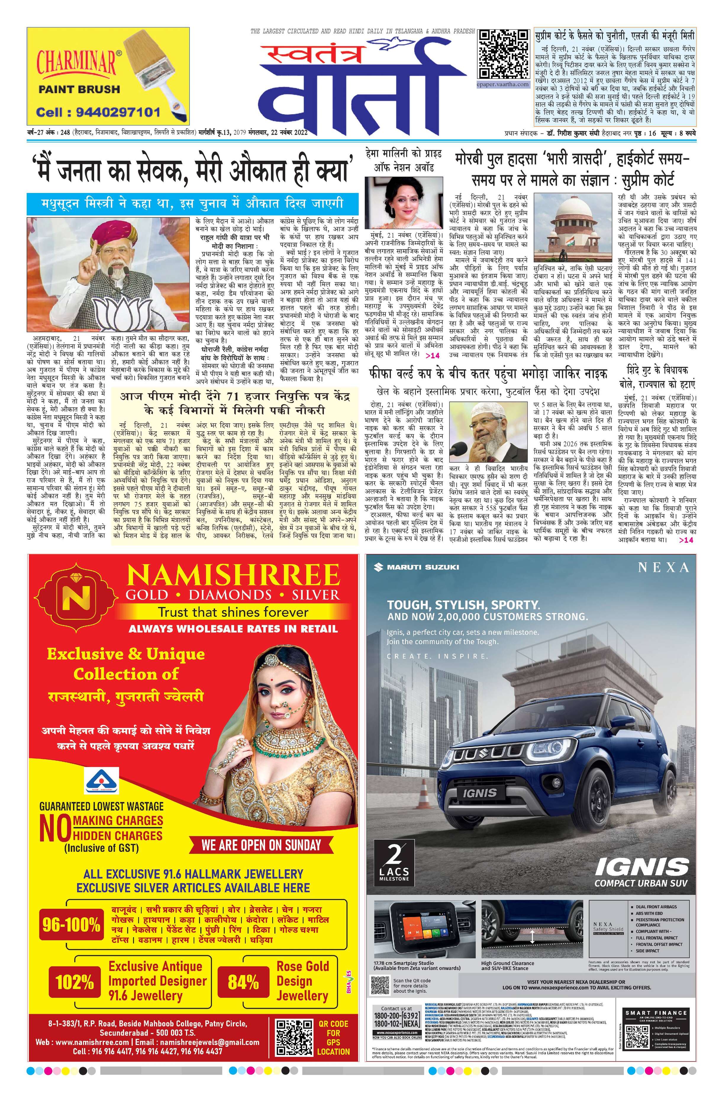 Swatantra Vaartha - 22 Nov 2022 - - Page 1