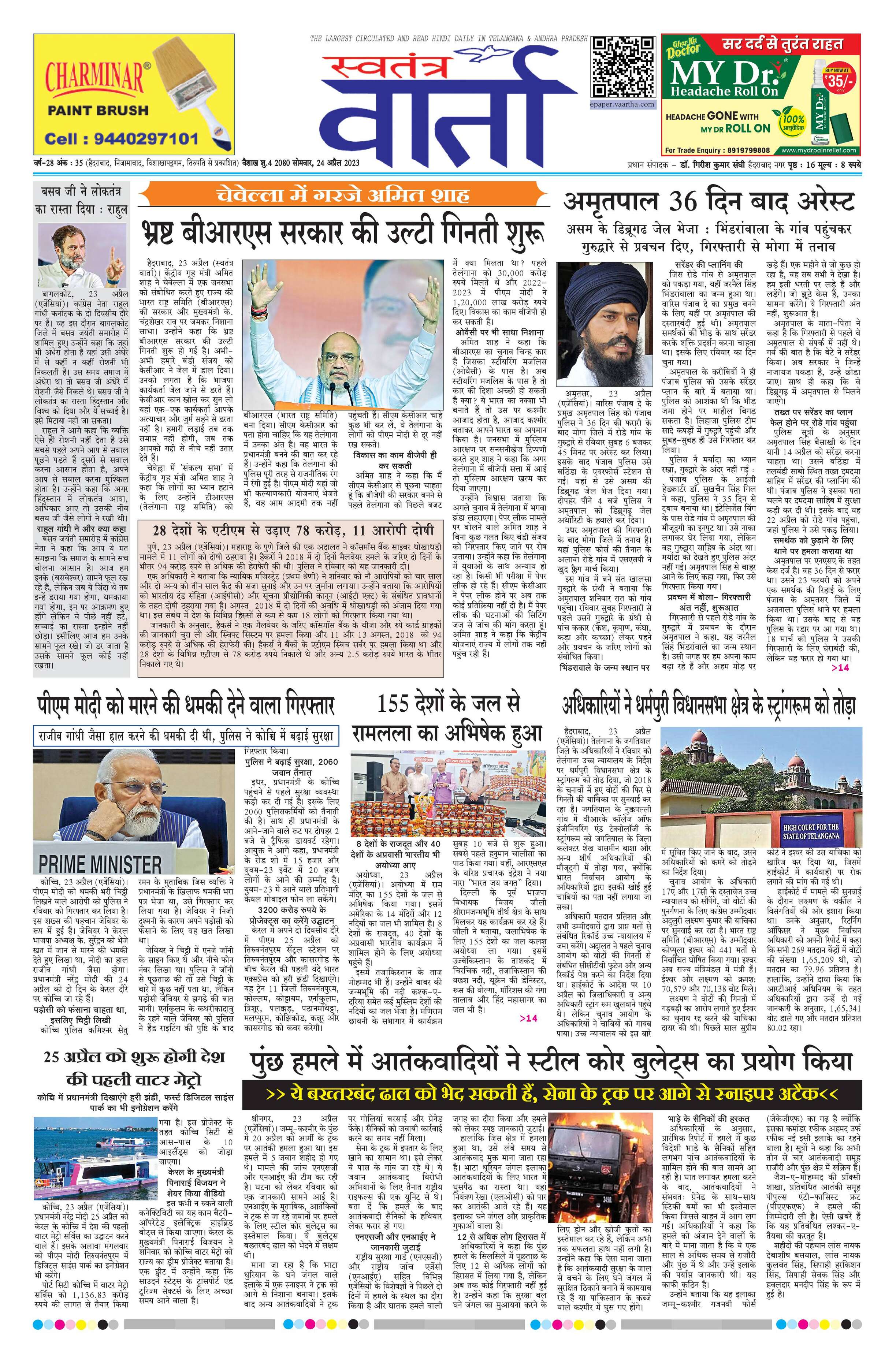 Swatantra Vaartha - 24 Apr 2023 - - Page 1
