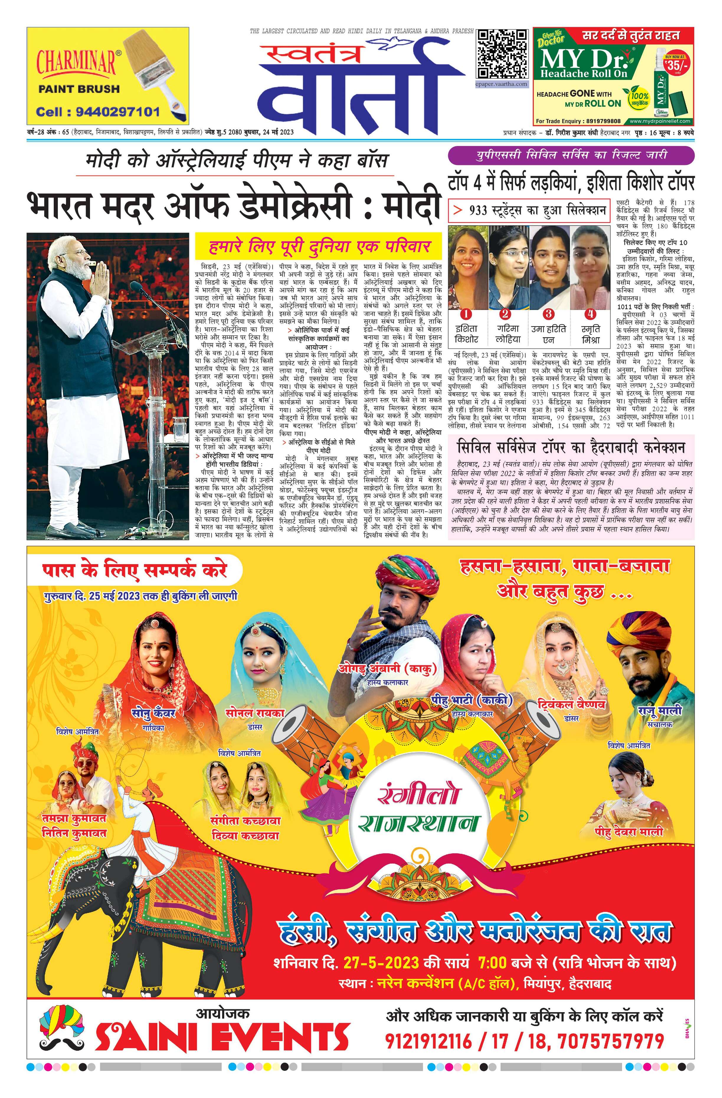 Swatantra Vaartha - 24 May 2023 - - Page 1