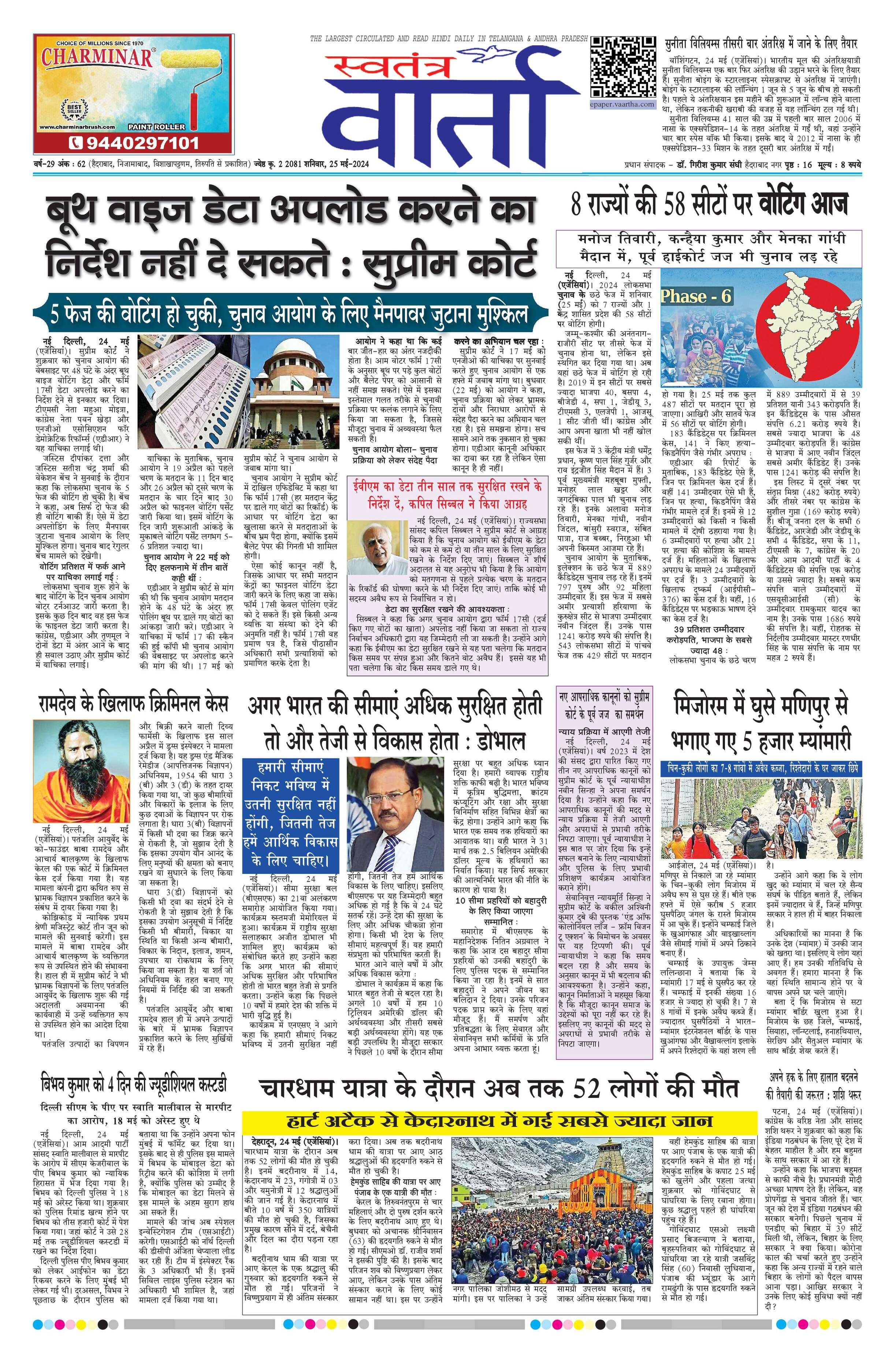 Swatantra Vaartha - 25 May 2024 - - Page 1