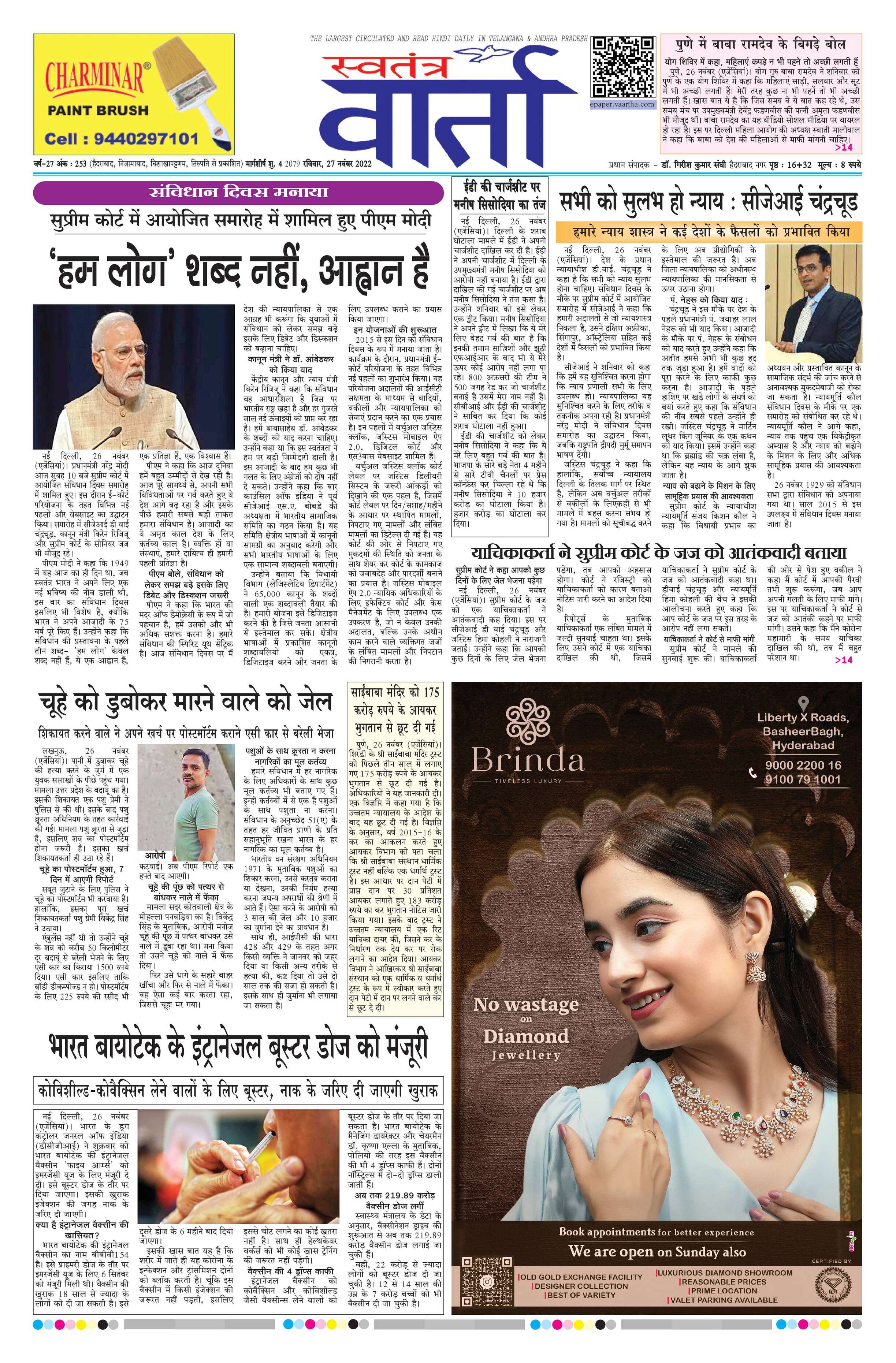 Swatantra Vaartha - 27 Nov 2022 - - Page 1