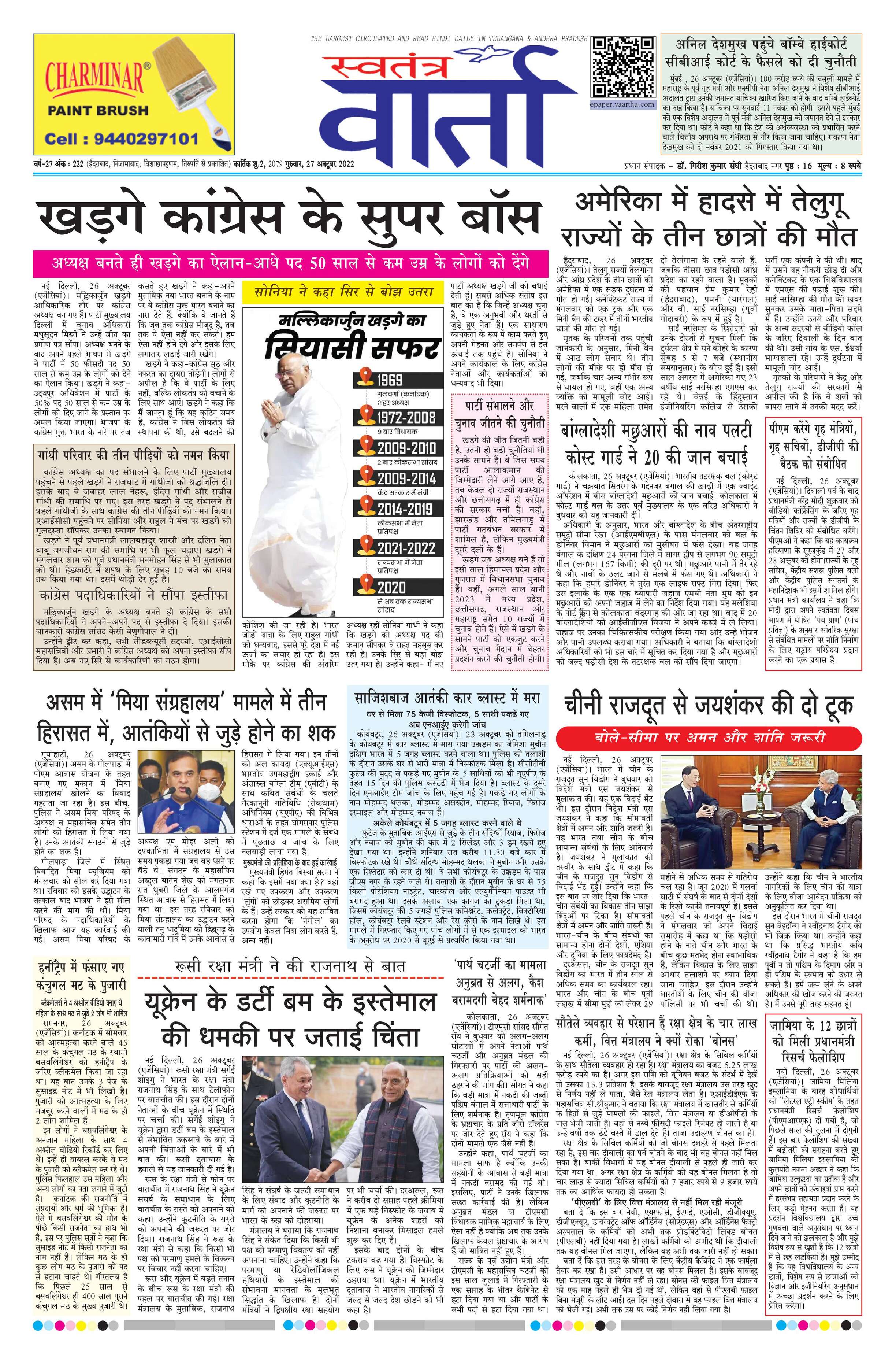 Swatantra Vaartha - 27 Oct 2022 - - Page 1