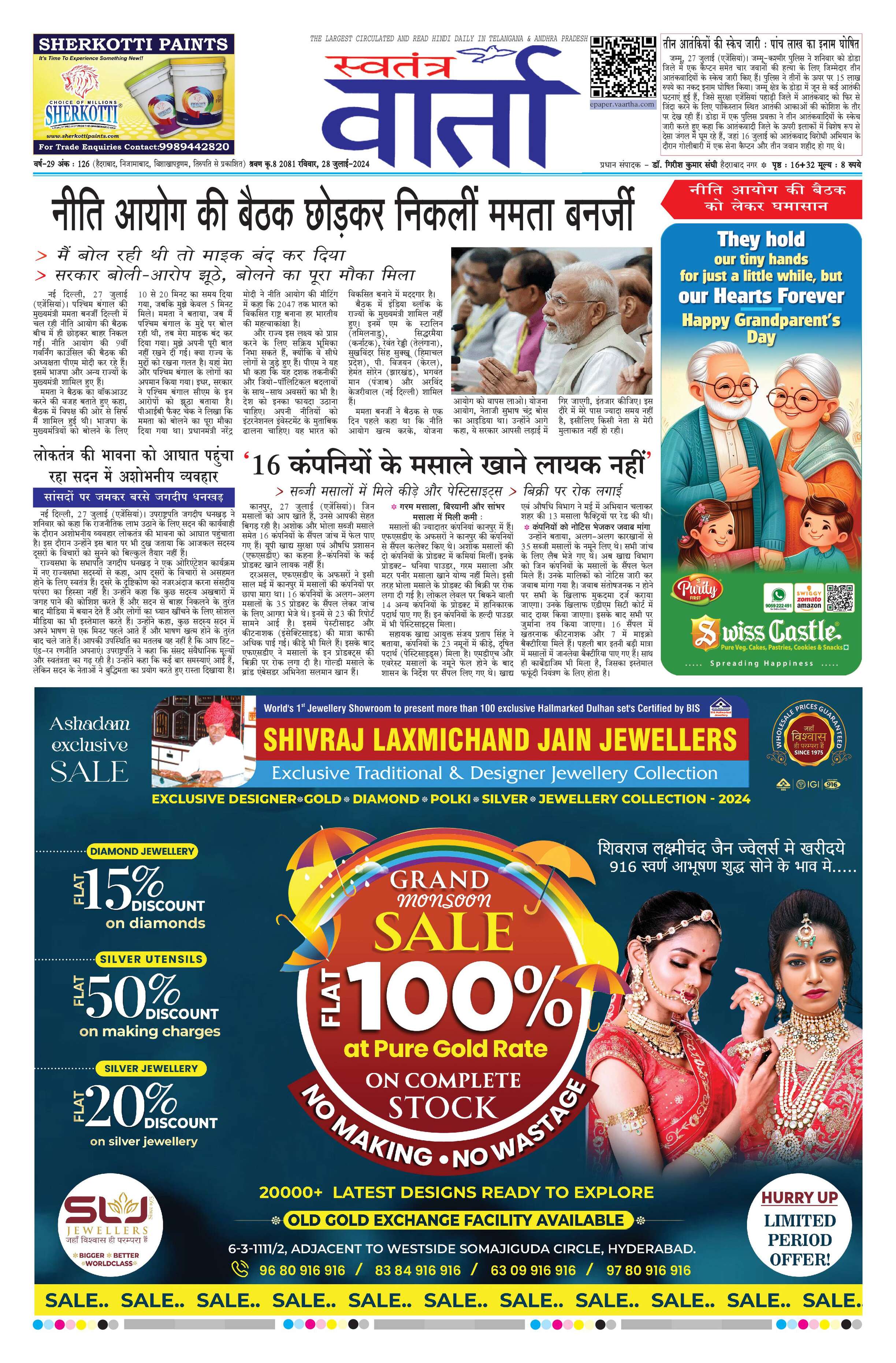 Swatantra Vaartha - 28 Jul 2024 - - Page 1