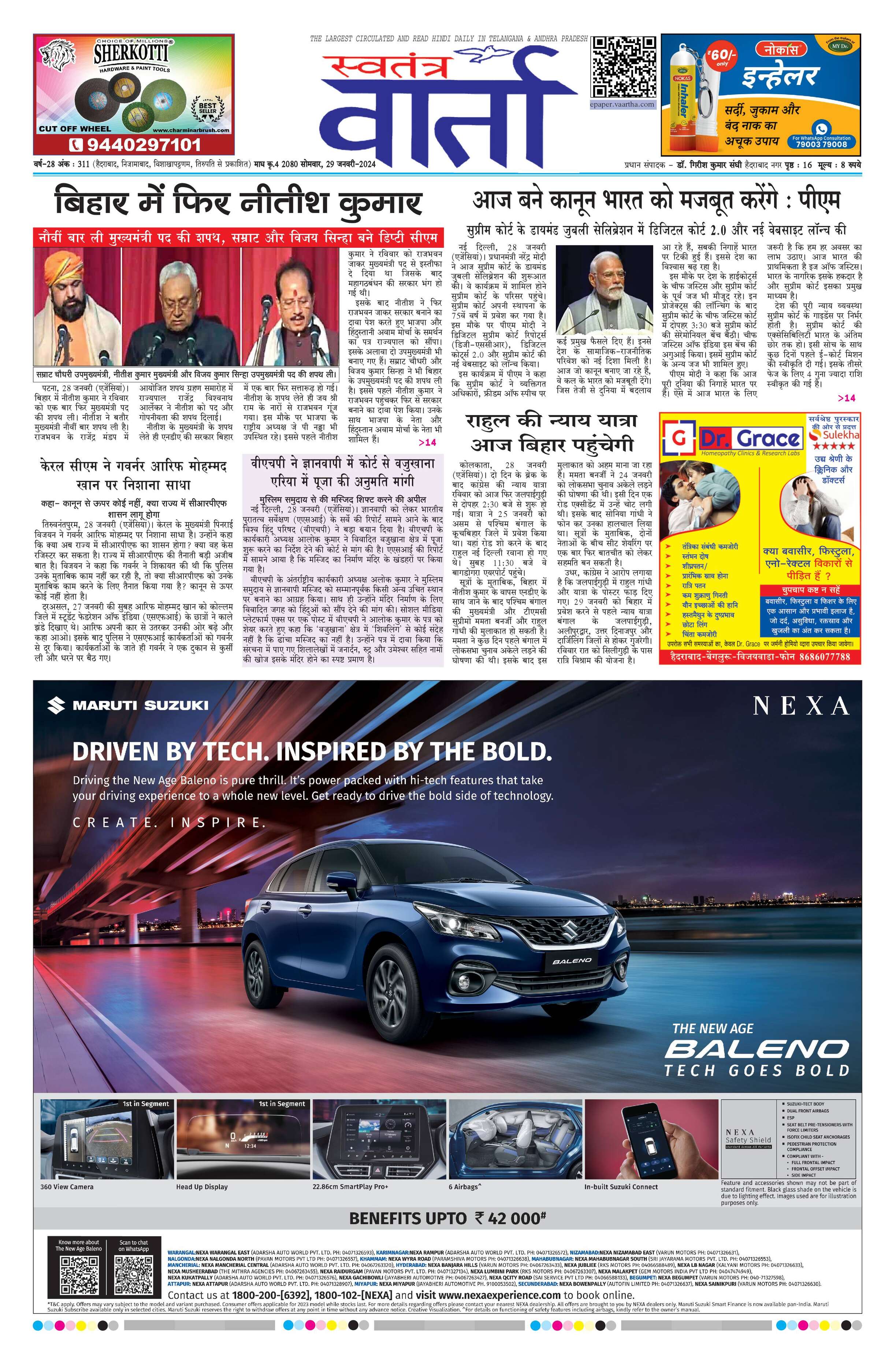 Swatantra Vaartha - 29 Jan 2024 - - Page 1