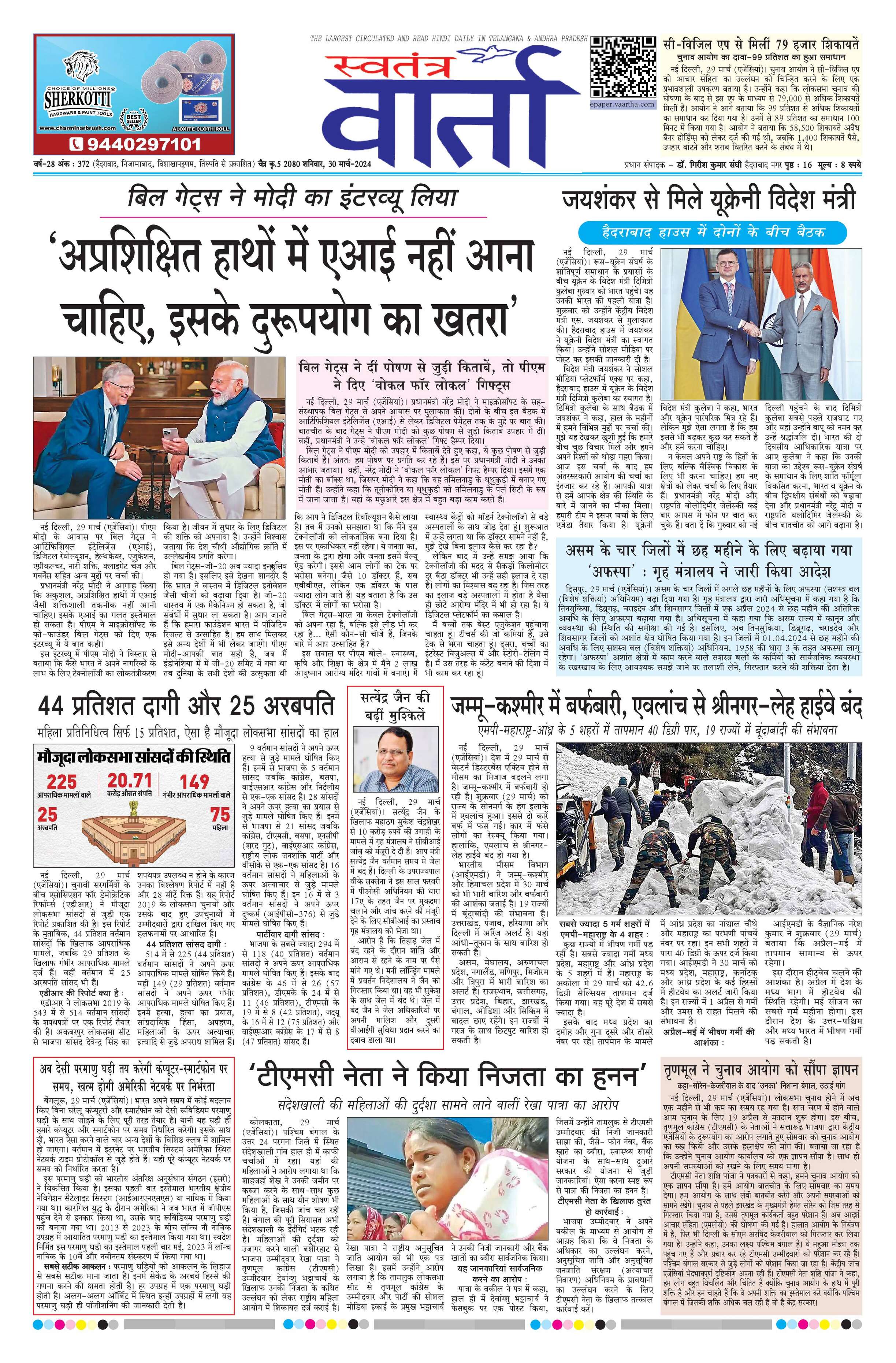 Swatantra Vaartha - 30 Mar 2024 - - Page 1