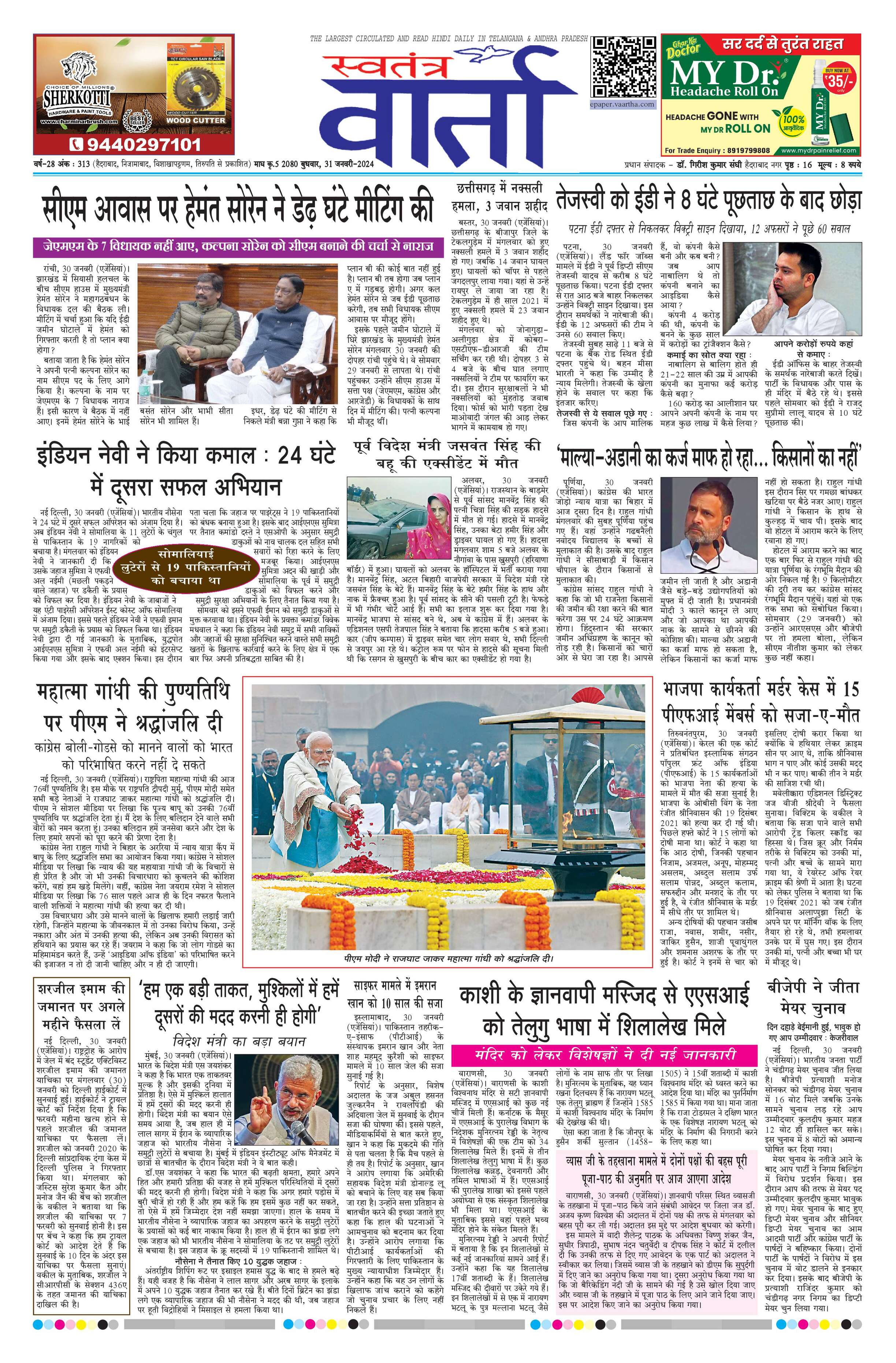 Swatantra Vaartha - 31 Jan 2024 - - Page 1