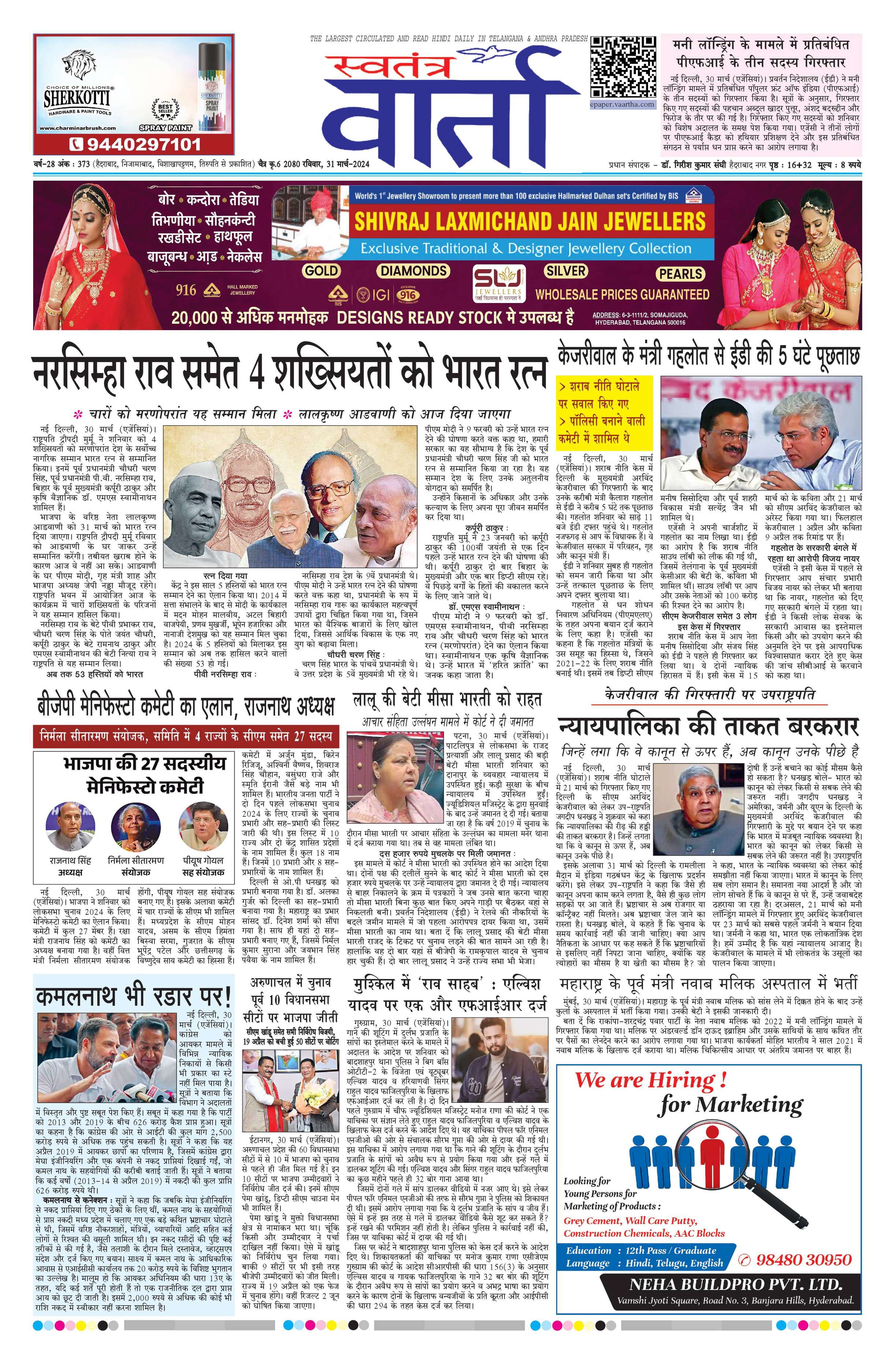 Swatantra Vaartha - 31 Mar 2024 - - Page 1
